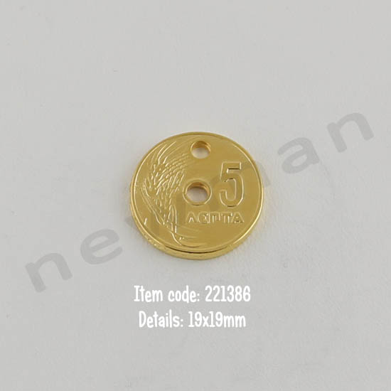 221386 | Νόμισμα 5 λεπτά χρυσό γυαλιστερό 19x19mm | 0,39 € |