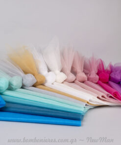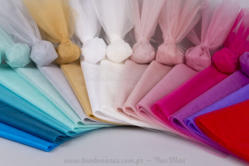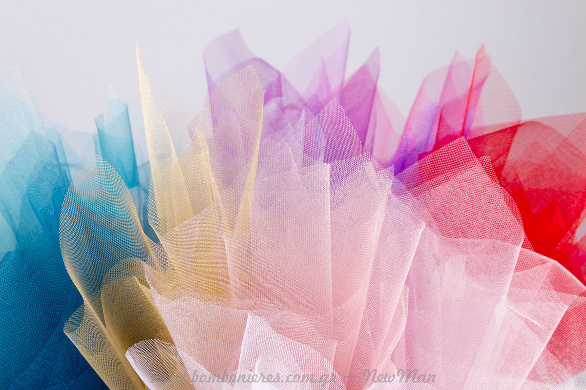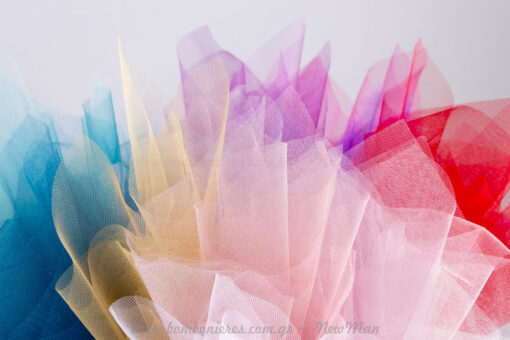 Το κρυσταλιζέ τούλι είναι ένα τούλι φίνο σαν το γαλλικό με βαθιά γυαλάδα και πολύ καλό κράτημα. Είναι ιδανικό για δημιουργία μπομπονιέρας, καθώς στέκεται και δεν λυγίζει. Σας το προτείνουμε κυρίως ως εξωτερικό τούλι για να δώσει ένα πιο κομψό και φαντεζί αποτέλεσμα στις μπομπονιέρες.