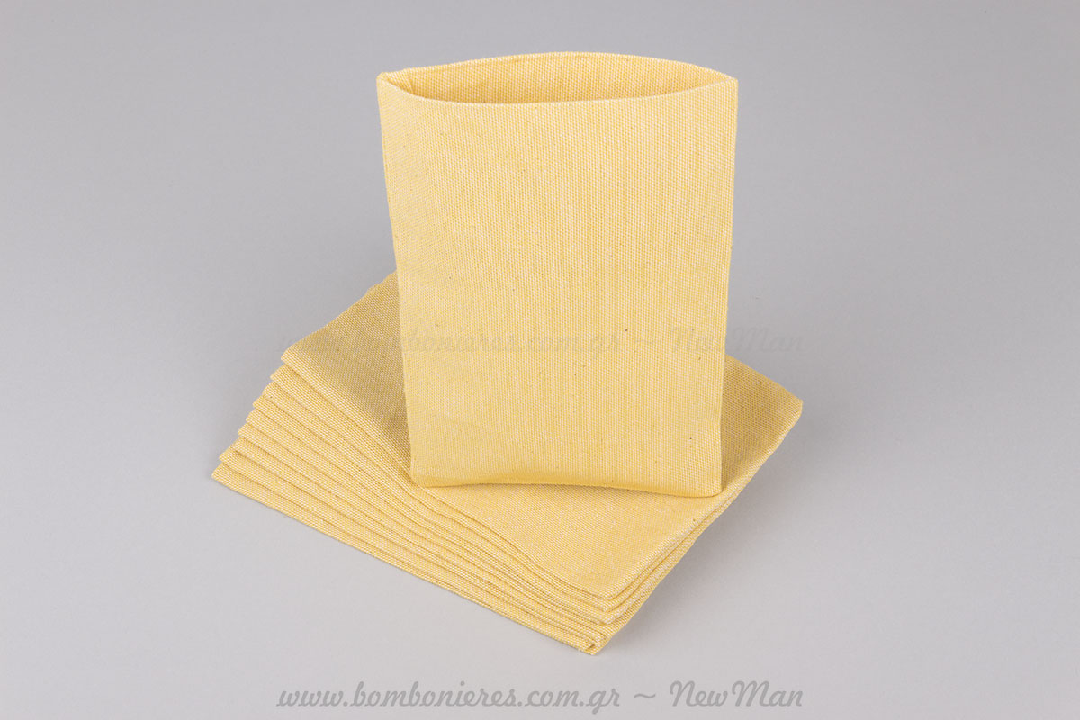 Δεν έχουν κορδόνι, κι αυτό σημαίνει ότι μπορούν πολύ εύκολα να δεθούν είτε σαν κλασικό πουγκί είτε σαν φάκελος. Δείτε ιδέες για στολισμό μπομπονιέρας με τα πουγκιά αυτά στα άρθρα μας εδώ.