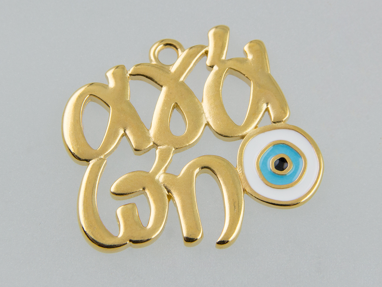 Μεταλλικό γούρι “αγάπη” κρεμαστό με στρογγυλό μάτι γούρι σε δύο χρώματα – χρυσό 24K και ασημί επάργυρο.