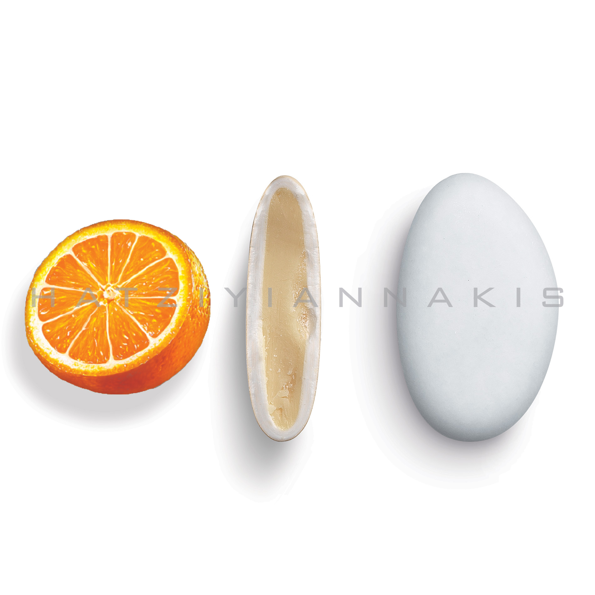 Κουφέτο λευκή σοκολάτα & επικάλυψη ζάχαρης με γεύση πορτοκάλι.
