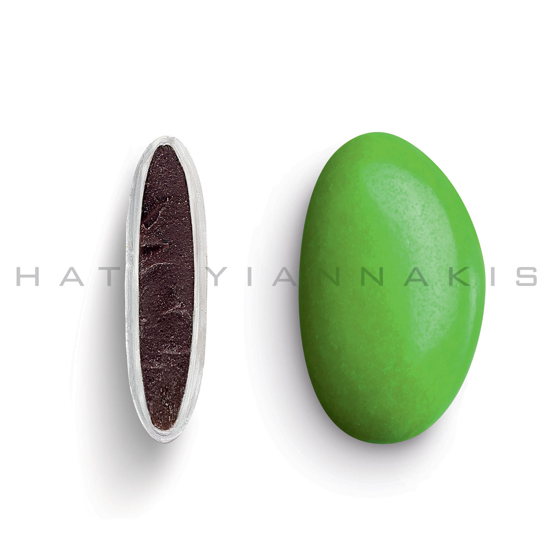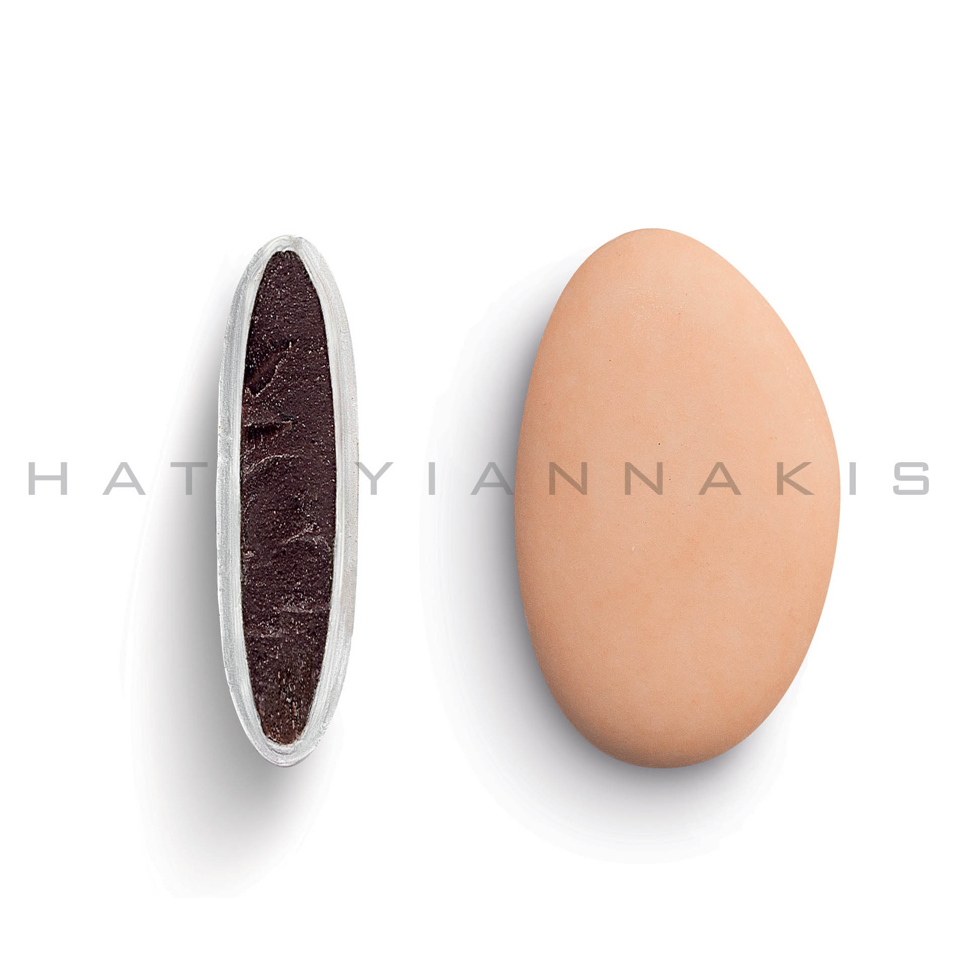 Κουφέτο με σοκολάτα (70% κακάο) & λεπτή στρώση ζάχαρης.