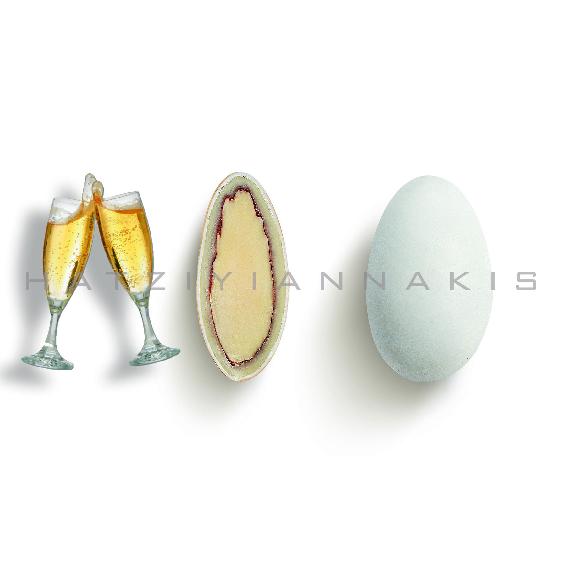 Ολόκληρο καβουρδισμένο αμύγδαλο & λευκή σοκολάτα με λεπτή επικάλυψη ζάχαρης, γεύση zabaglione.