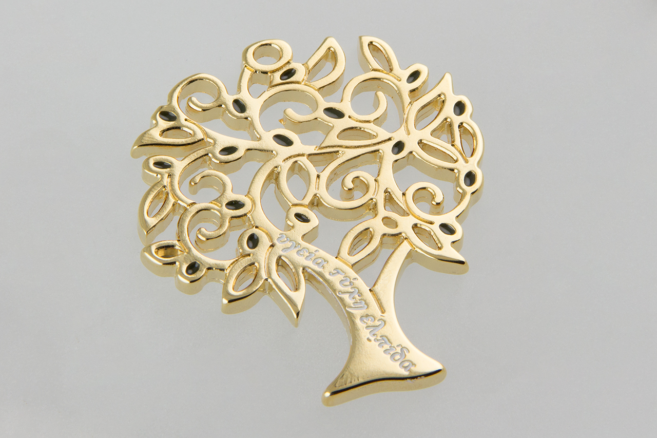 Μεταλλικό γούρι  – μοτίφ δέντρο ελιάς ζαμάκ με ευχές σε χρυσό 24Κ χρώμα.