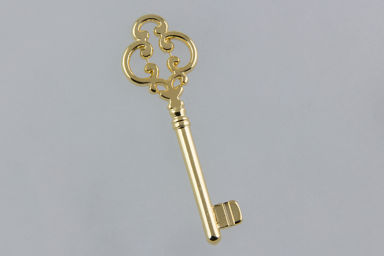 Μεταλλικό γούρι – μοτίφ κλειδί ζαμάκ διάτρητο σε χρυσό 24Κ χρώμα.