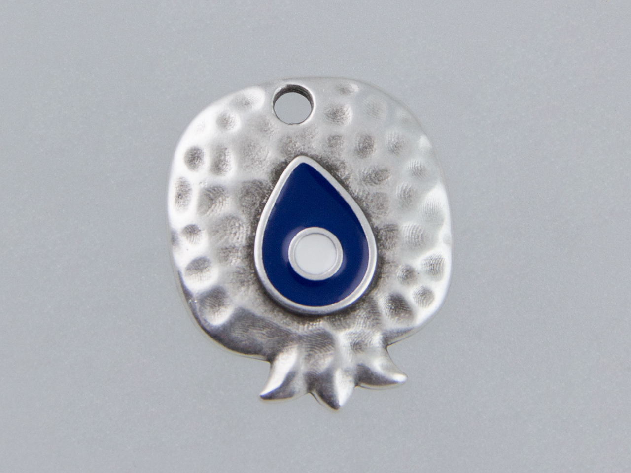Μεταλλικό γούρι ρόδι κρεμαστό με μάτι δάκρυ γούρι σε δύο χρώματα με σμάλτο – χρυσό 24K και ασημί επάργυρο.