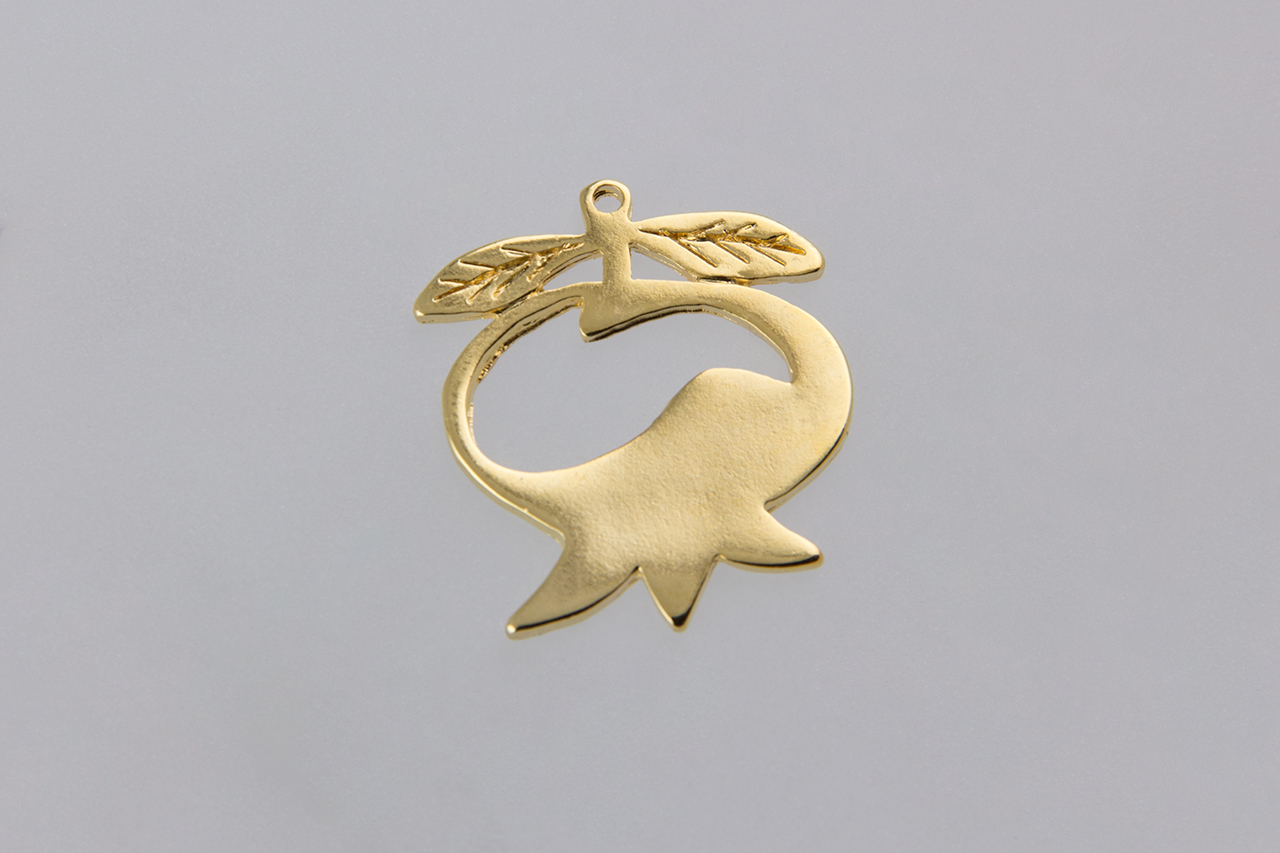 Μεταλλικό γούρι – μοτίφ ρόδι ζαμάκ διάτρητο με φύλλα σε χρυσό 24Κ χρώμα.
