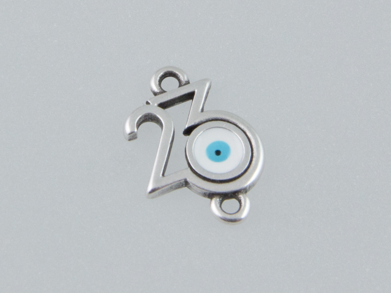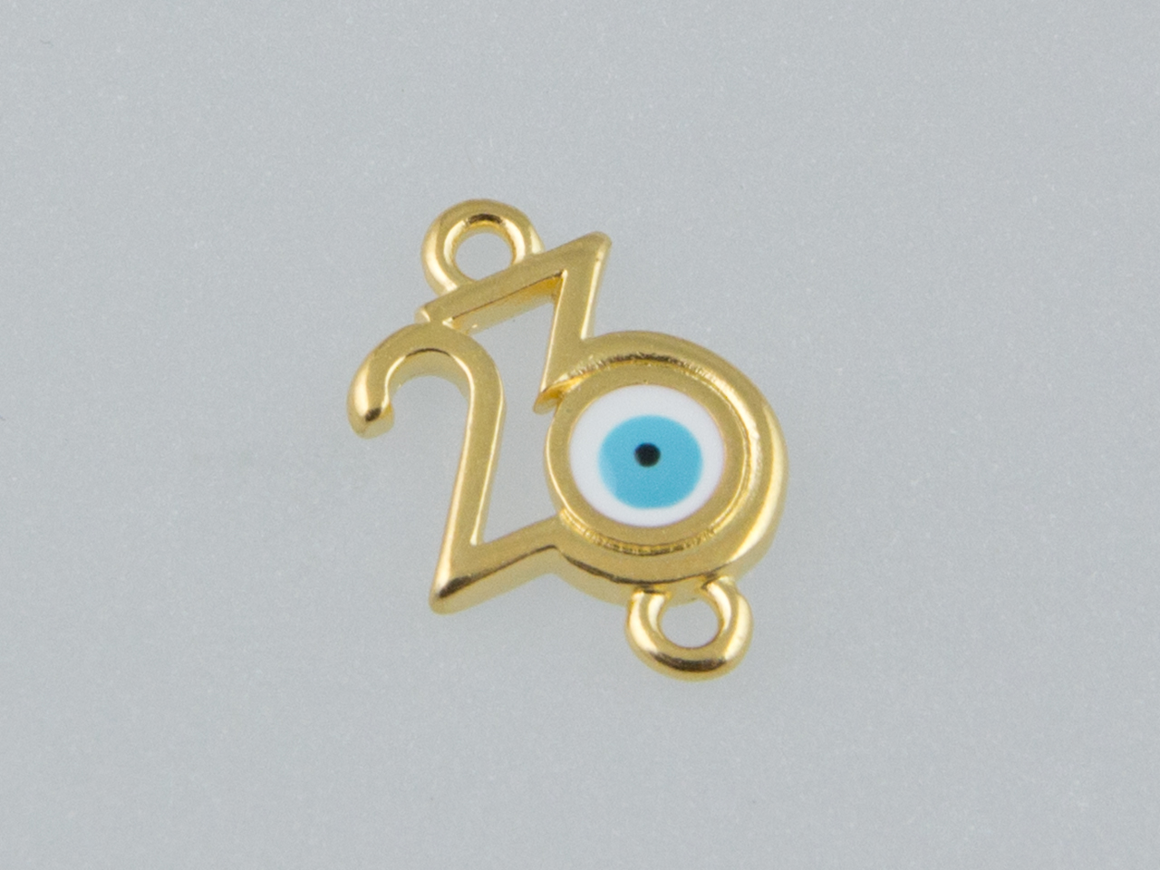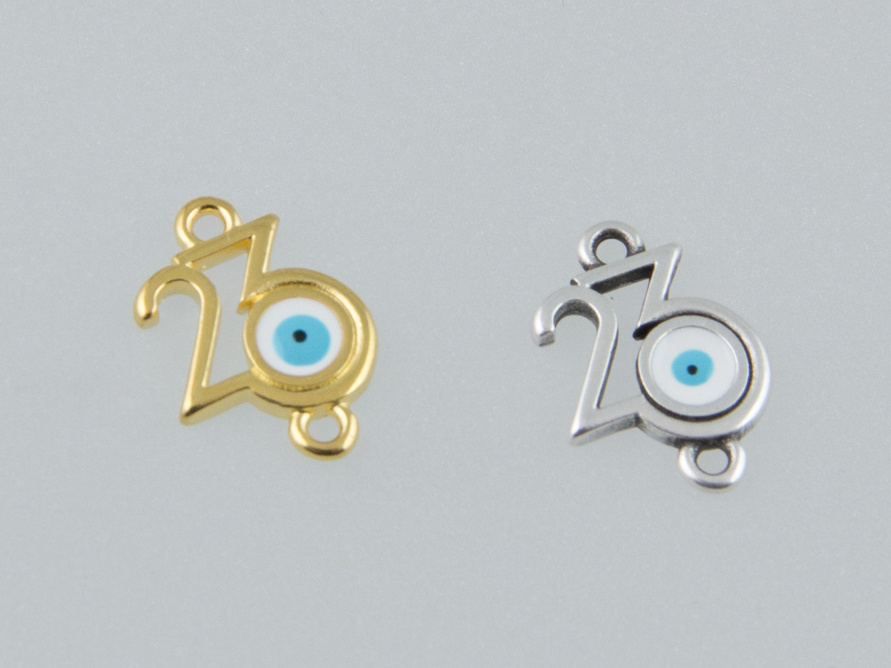 Μεταλλικό μοτίφ no 23 με στρογγυλό μάτι & δύο κρικάκια γούρι σε δύο χρώματα – χρυσό 24K και ασημί επάργυρο.