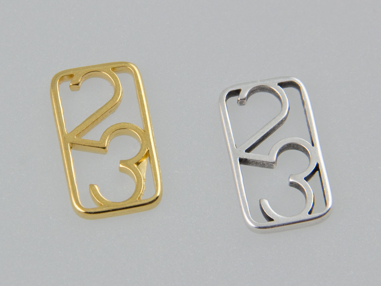 Μεταλλικό μοτίφ παραλληλόγραμμο no 23 γούρι με περίγραμμα σε δύο χρώματα – χρυσό 24K και ασημί επάργυρο.