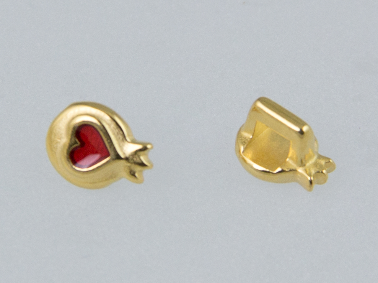 Μεταλλικό μοτίφ ρόδι με κόκκινη καρδιά σε χρυσό 24Κ χρώμα.