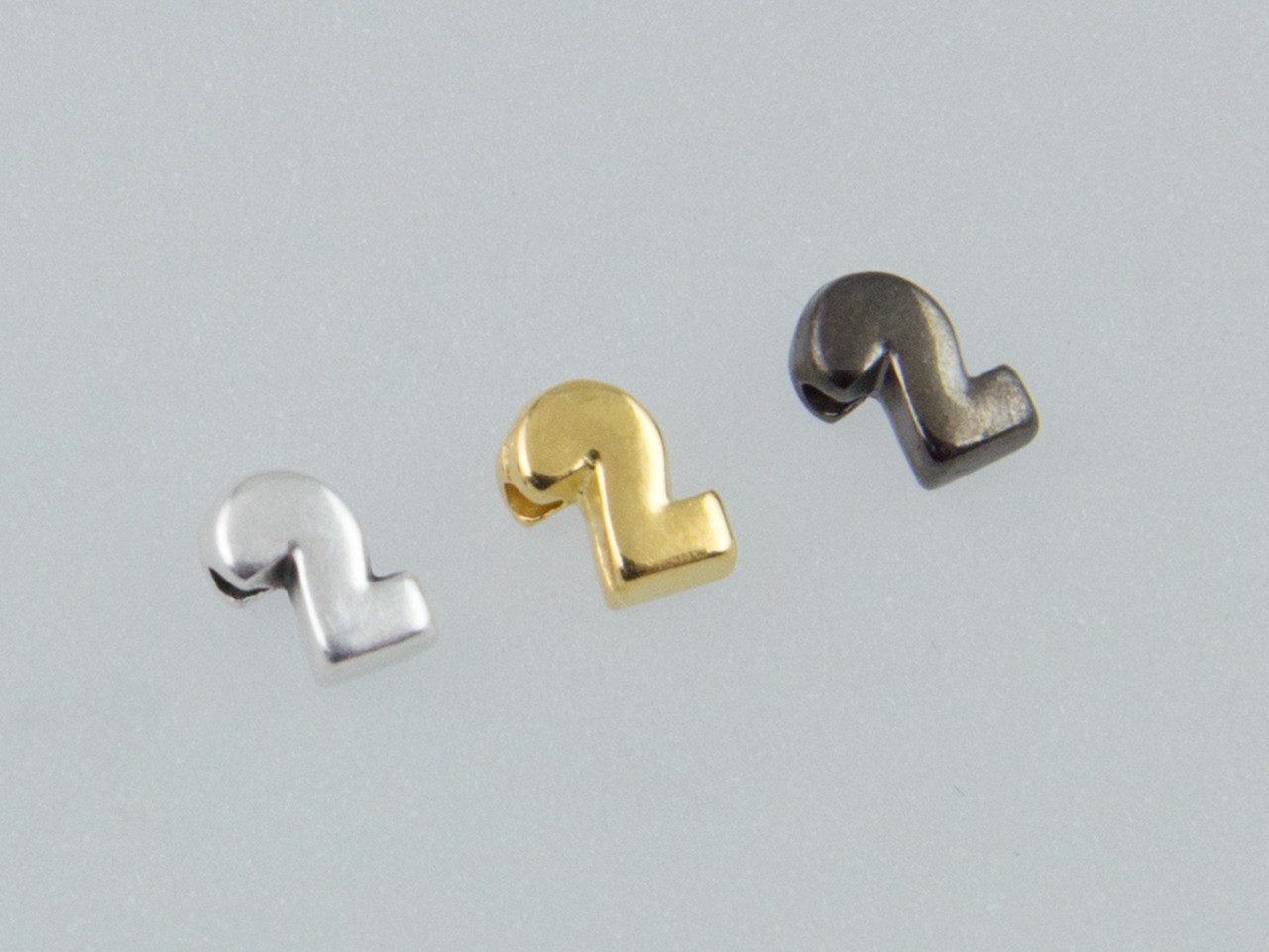 Μεταλλικό μοτίφ χάντρα bold γούρι no 2 στα χρώματα χρυσό 24Κ – ασημί επάργυρο – μαύρο.