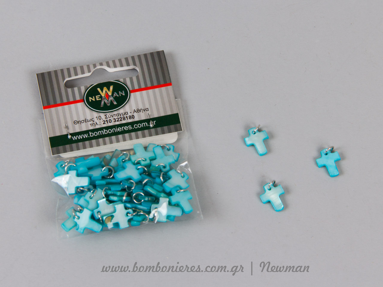 Μικρός σταυρός από φίλντισι, σε σιέλ χρώμα, για τα μαρτυρικά της βάπτισης. Διαστάσεις 10×12 mm. Πωλείται σε συσκευασίες που περιέχουν 50 τεμάχια.