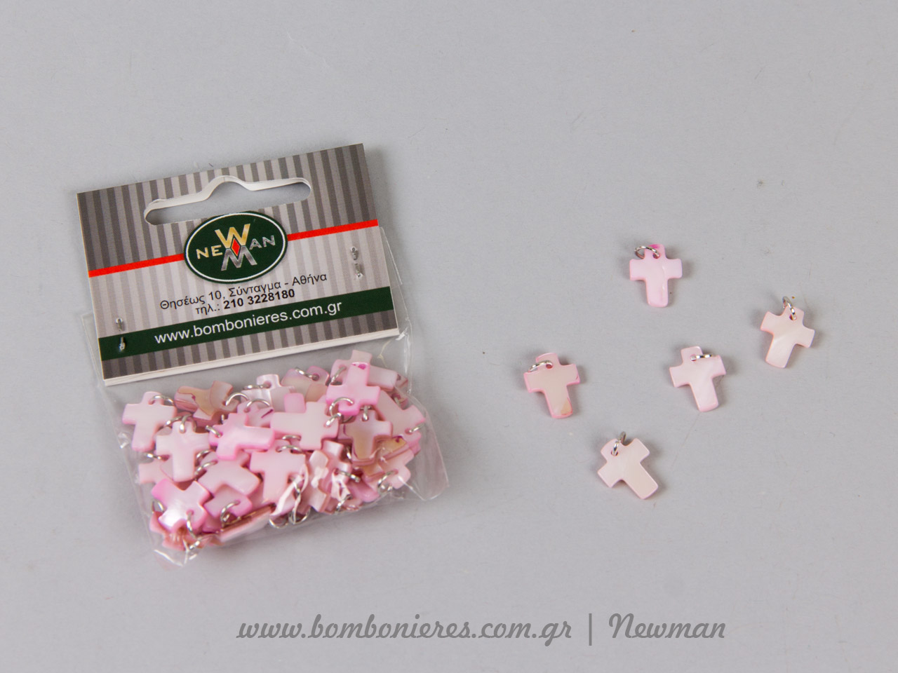 Μικρός σταυρός από φίλντισι, σε ροζ χρώμα, για τα μαρτυρικά της βάπτισης. Διαστάσεις 10×12 mm. Πωλείται σε συσκευασίες που περιέχουν 50 τεμάχια.