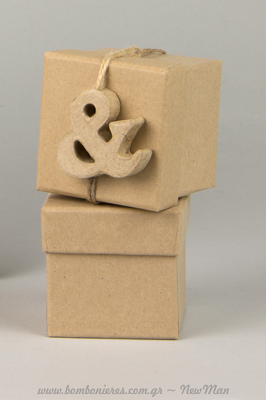 Μπομπονιέρα γάμου «&» σε χάρτινο οικολογικό κουτί της σειράς vintage (6 x 6 x 6cm). Για να ενσωματώσετε τα διακοσμητικά σύμβολα & θα χρειαστείτε κορδόνι γιούτα.
