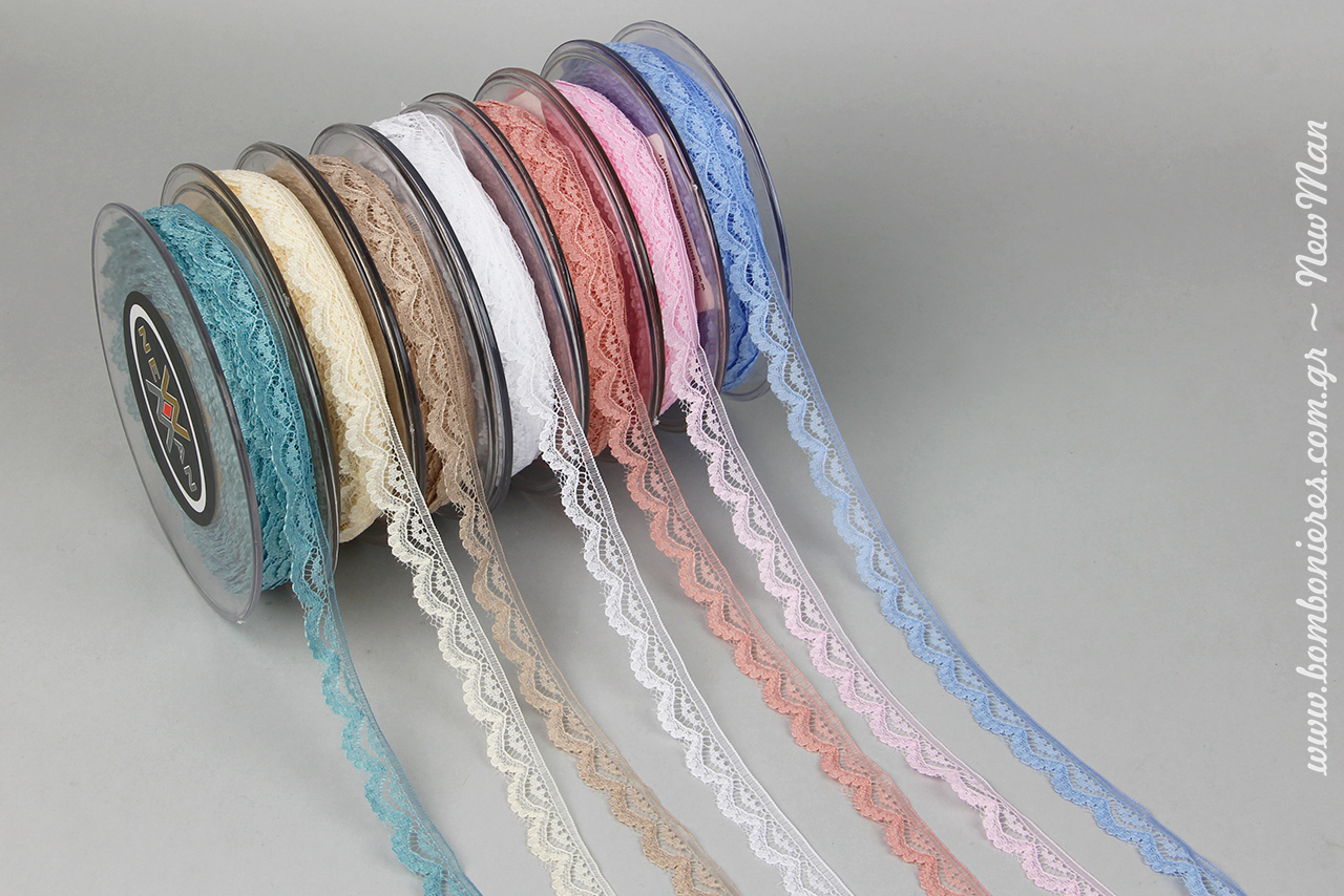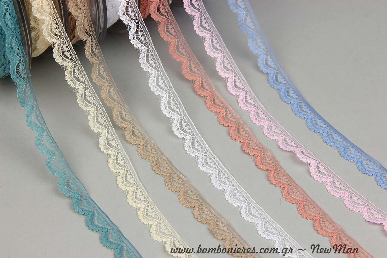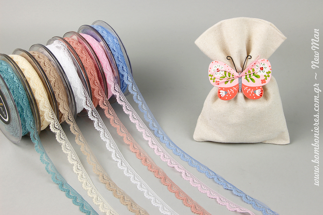 Δαντελένιες κορδέλες Αmor για τη δημιουργία μιας ξεχωριστής μπομπονιέρας σε ρομαντικό ύφος.