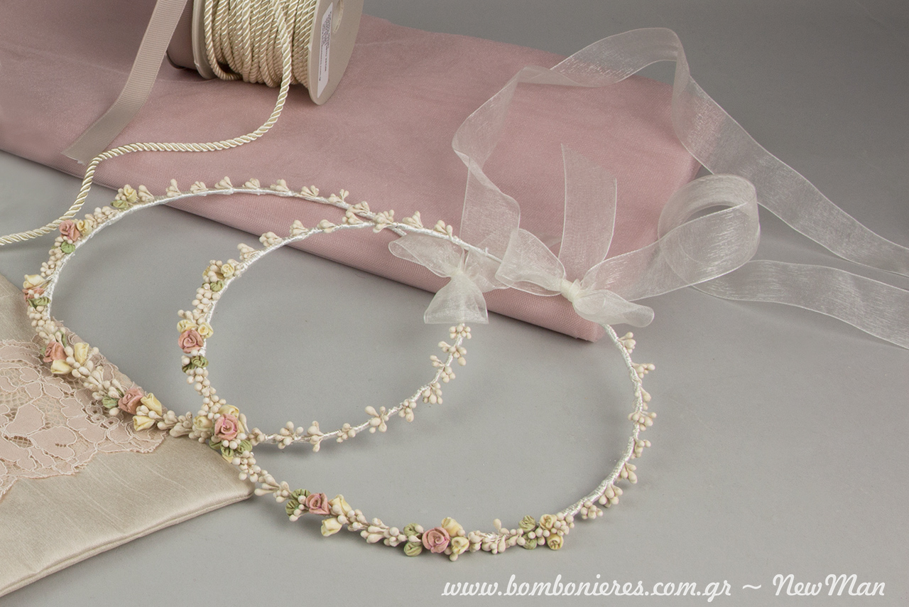 Μας τα ζητήσατε και σας τα φέραμε. Χειροποίητα στέφανα γάμου από δέρμα και πανέμορφα πορσελάνινα λουλουδάκια για ένα ρομαντικό στυλ που θα ξεχωρίσει. Δεμένα με κορδέλα υψηλής ποιότητας, συνοδεύονται από πολυτελές κουτί και τρεις καρφίτσες πέτου.
