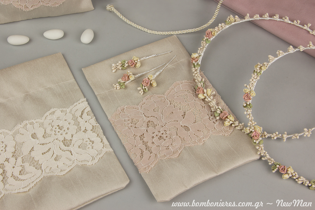 Στο κατάστημα Newman φροντίζουμε να κάνουμε τα όνειρα σας πραγματικότητα, δημιουργώντας ξεχωριστές μπομπονιέρες από τα πιο ιδιαίτερα υλικά, όπως αυτές που σας παρουσιάζουμε σήμερα σε μεταξωτό πουγκί Σαντούκ, και φροντίζοντας κάθε λεπτομέρεια του γάμου σας όπως τα στέφανα.