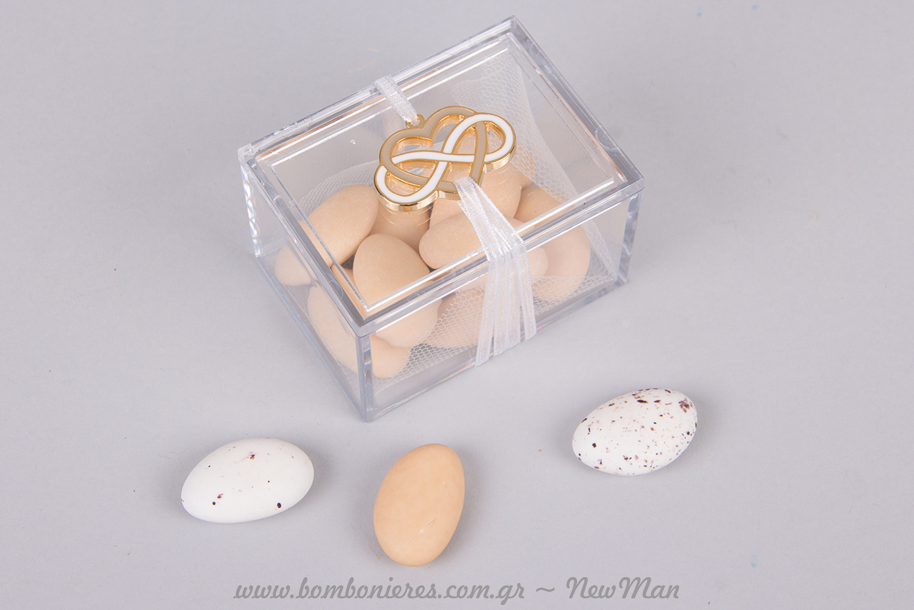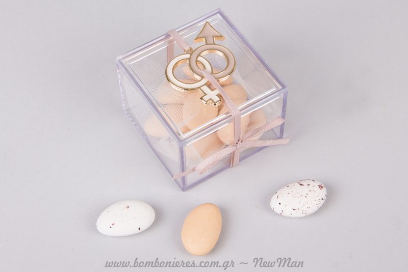 Tip: Επειδή το κουτάκι μας είναι διαφανές ακόμη και τα κουφέτα γίνονται μέρος της χρωματικής σύνθεσης, οπότε μη μείνετε μόνο στο λευκό κλασσικό κουφέτο. Στο κατάστημά μας, Θησέως 10, θα βρείτε μια τεράστια ποικιλία κουφέτων Χατζηγιαννάκης, σε διάφορες γεύσεις, αποχρώσεις και σχήματα.