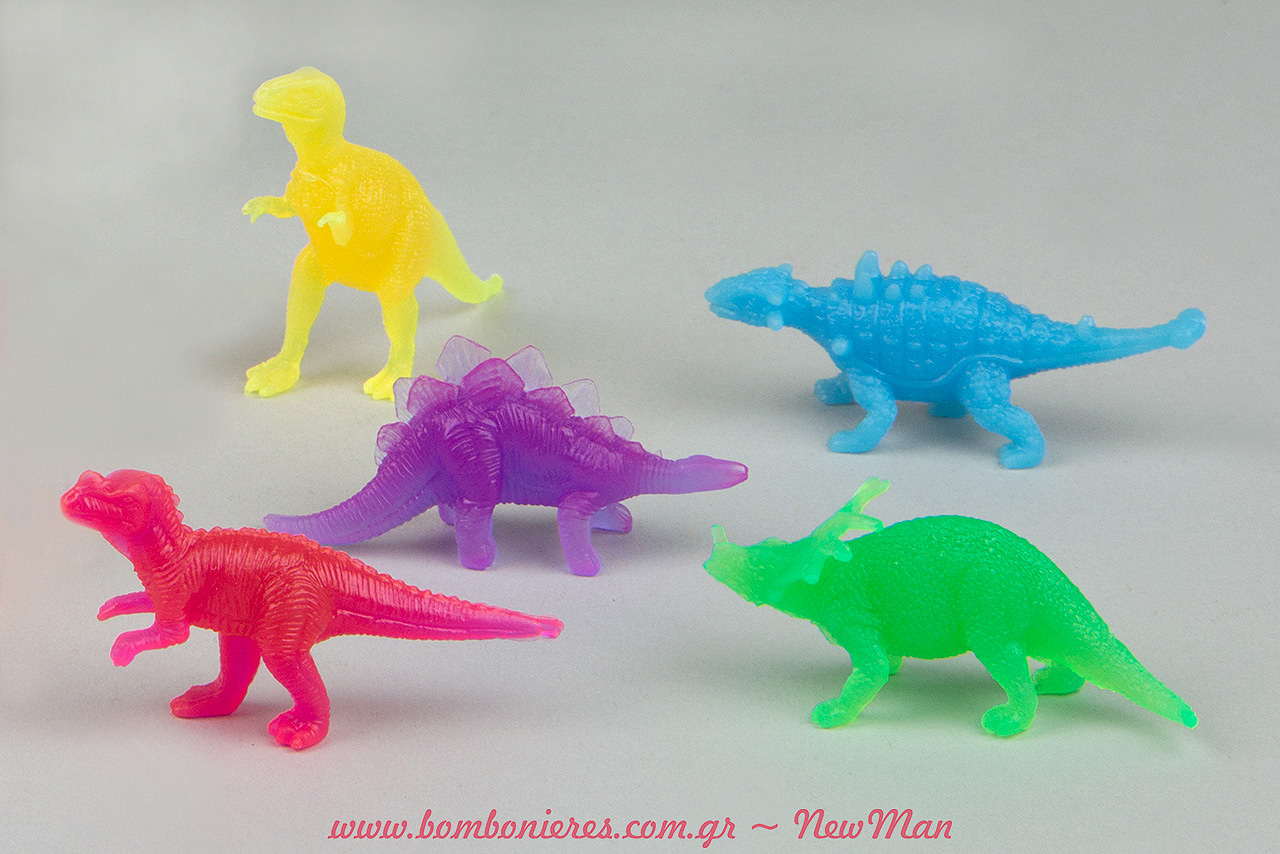Απασχολήστε τους μικρούς σας καλεσμένους, προσφέροντας και μια εκπαιδευτική διάσταση στο παιχνίδι τους, με τις πολύχρωμες φιγούρες δεινοσαύρων (νέον). Είναι πολύχρωμοι, χαρούμενοι, φωσφορίζουν στο σκοτάδι και θα ξετρελάνουν μικρούς και μεγάλους.