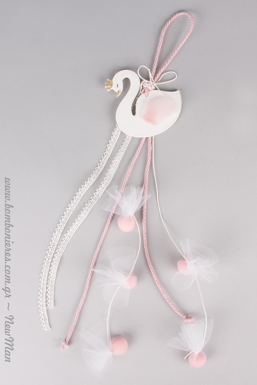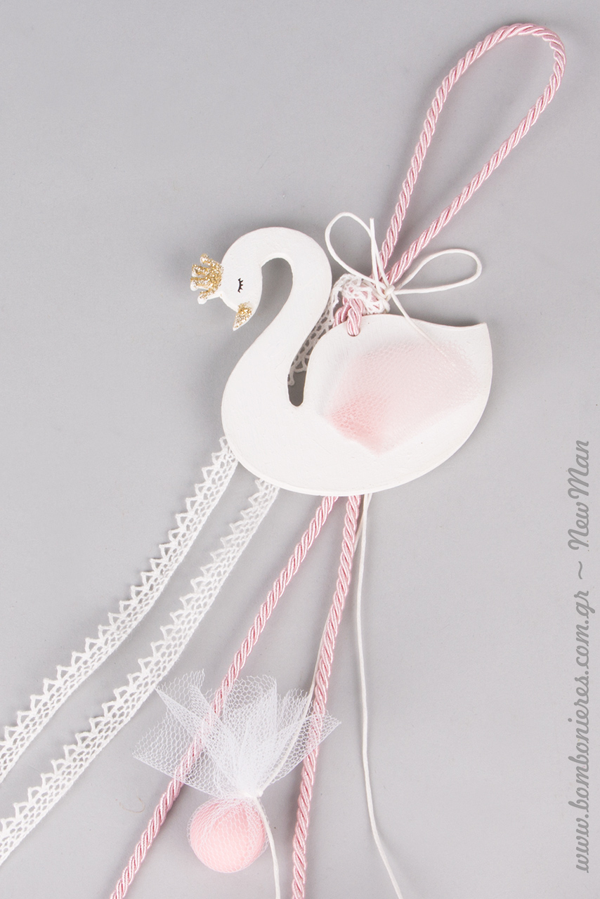 Αιθέρια κρεμαστή μπομπονιέρα με θέμα «Κύκνος» για τη βάπτιση της μικρής σας πριγκίπισσας.