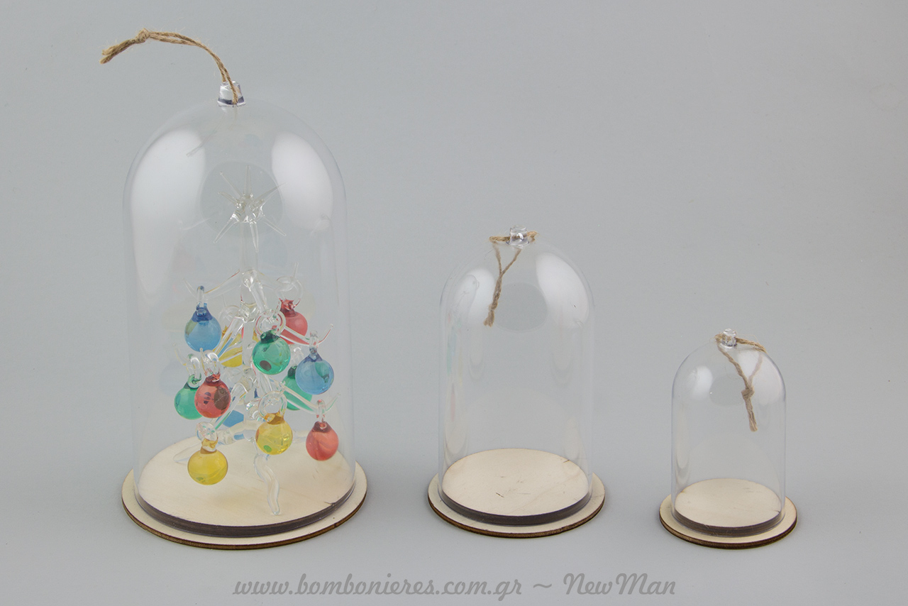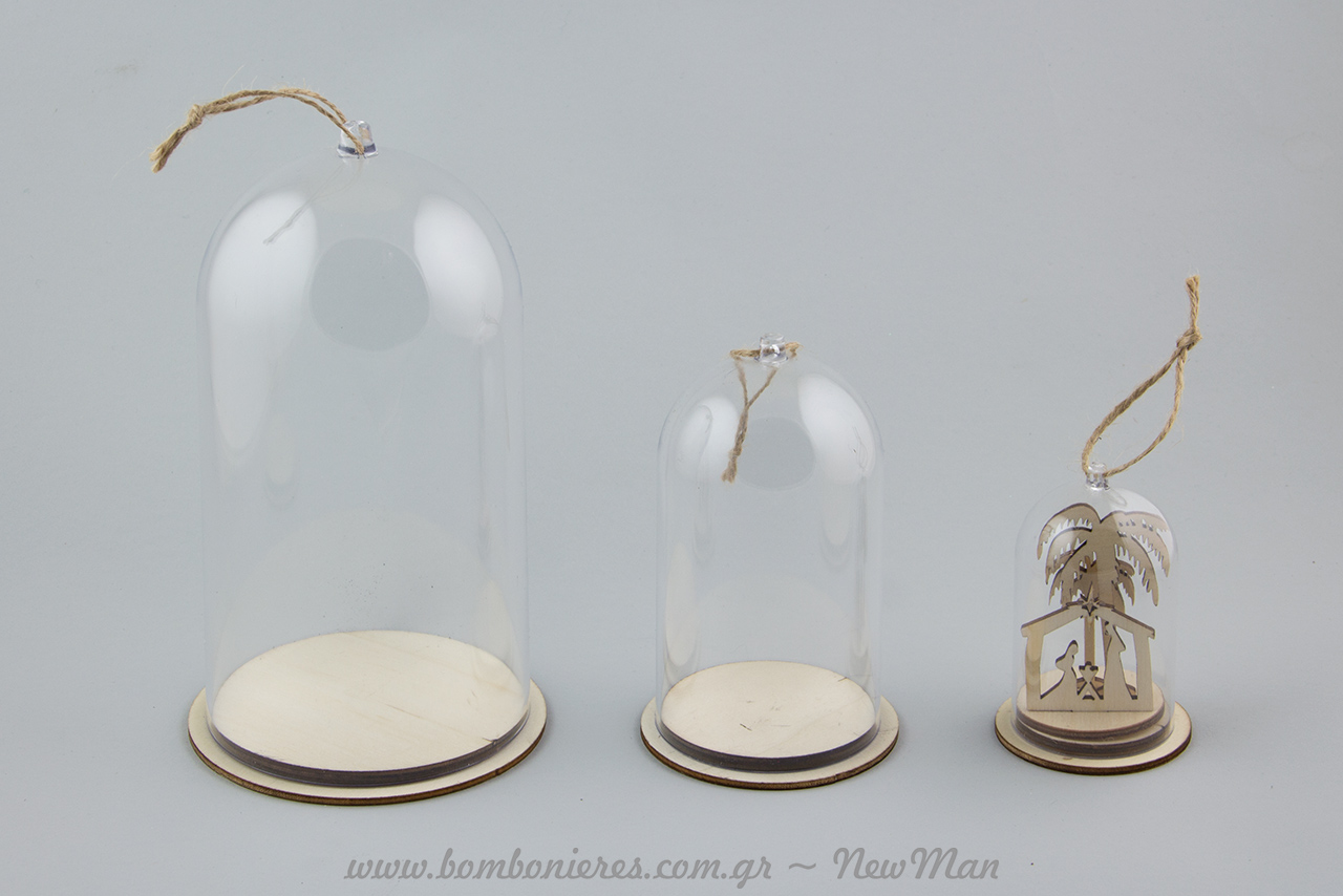 Οι διακοσμητικές καμπάνες μας διατίθενται σε τρία διαφορετικά μεγέθη: φ6 x 9cm, φ8 x 13cm, φ11 x 19cm και έχουν όλες ξύλινη βάση.