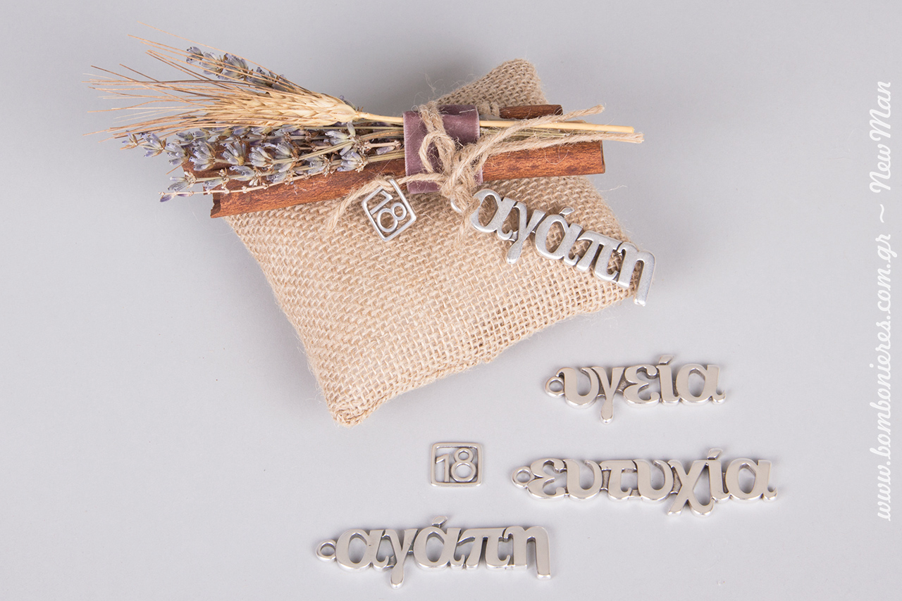 Αναλόγως την περίσταση, διαλέγετε και τις μεταλλικές ευχές. Αν όντως το επιλέξετε ως δωράκι προς τους καλεσμένους σας την ημέρα του αρραβώνα, προτείνουμε το διακοσμητικό Αγάπη ή το διακοσμητικό Ευτυχία. Αν μάλιστα το ευτυχές γεγονός έχει οργανωθεί μέσα στις Γιορτές, τι καλύτερο από το να προσθέσετε και το επάργυρο διακοσμητικό 18 στη σύνθεση.