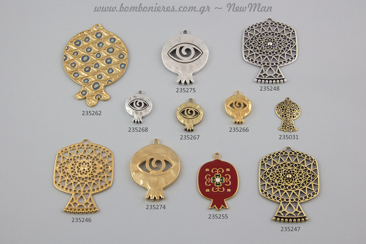 235266 | Ρόδι Σφυρήλατο με Μάτι Χρυσό 26,6×34,8mm | πακέτο 2τεμ. | 1,92 € | 3,84 € |