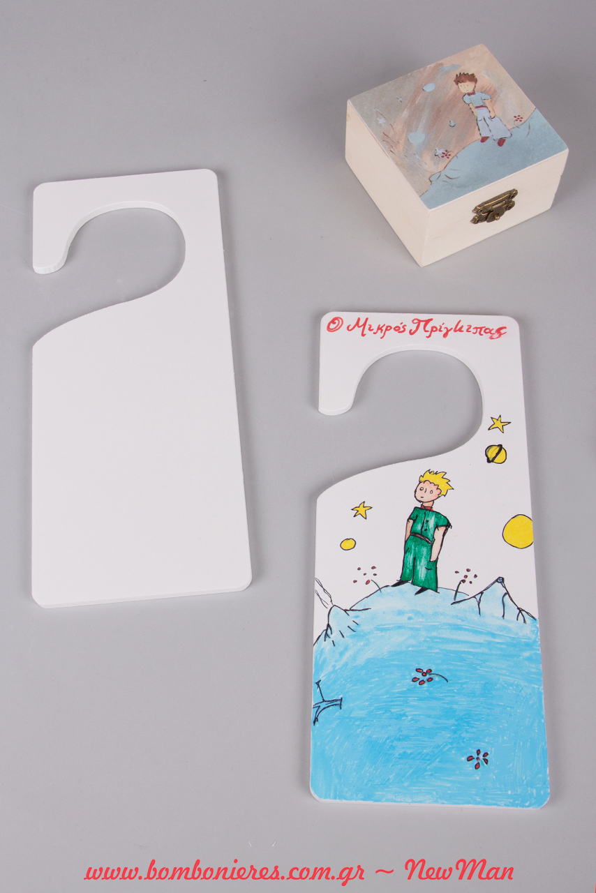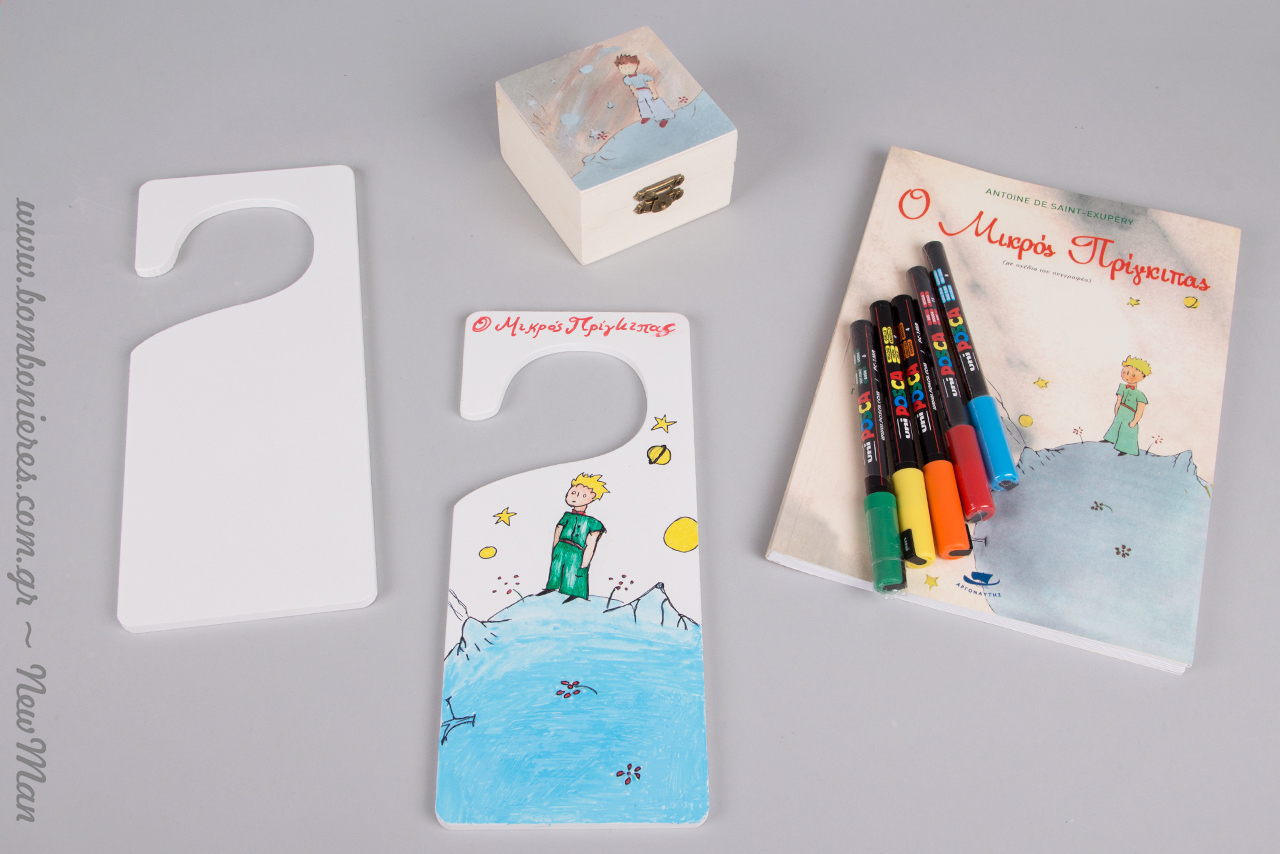Μια βάπτιση με θέμα τον Μικρό Πρίγκηπα –ένα από πιο δημοφιλή και διαχρονικά θέματα- είναι πάντα μια ευχάριστη πρόκληση, αφού οι ιδέες για μπομπονιέρες ή για τη διακόσμηση και το στολισμό είναι άπειρες. Στη σημερινή μας ανάρτηση ο μικρός πρίγκηπας μετέφερε τον αστεροειδή του πάνω στις ξύλινες μπιζουτιέρες- μπομπονιέρες (9 x 9 x 5cm) που θα αποτελέσουν ένα ιδανικό ενθύμιο της βάπτισης του μικρού σας.
