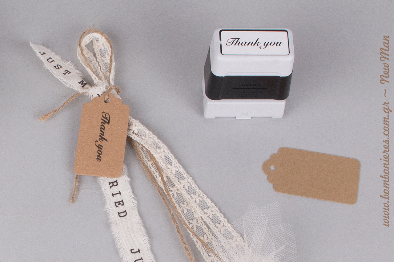 Τip 2: Σφραγίστε τις ετικέτες Eco Brown σε φυσική απόχρωση με σφραγίδα Brother, ευχαριστώντας τους καλεσμένους σας για την παρουσία τους.