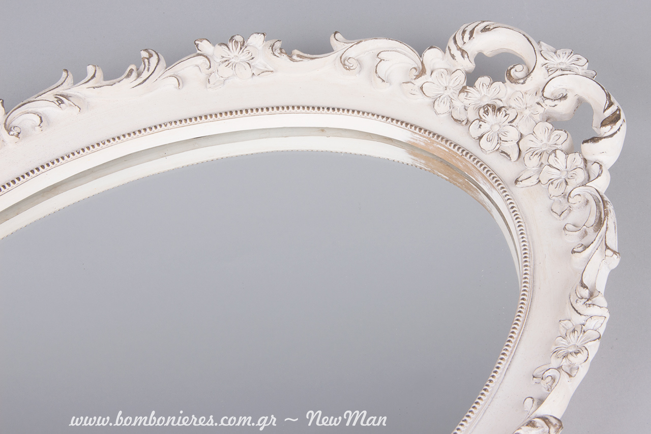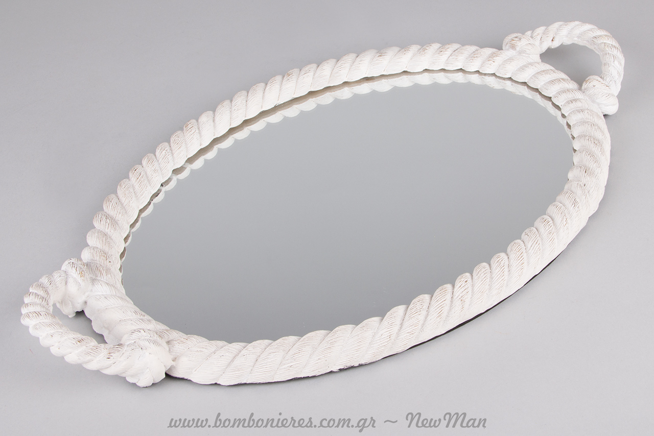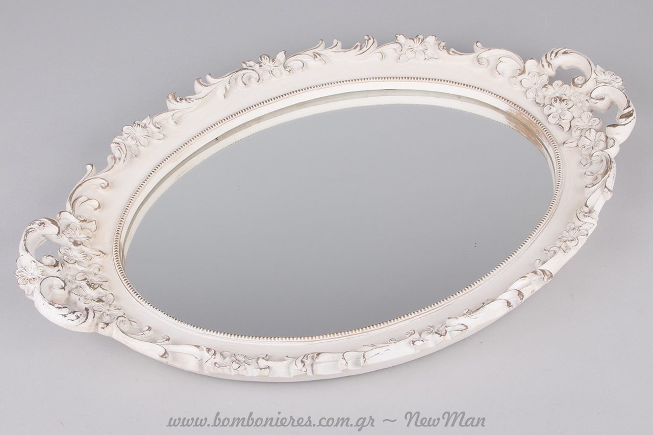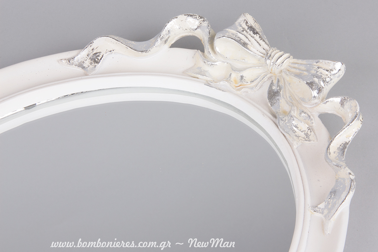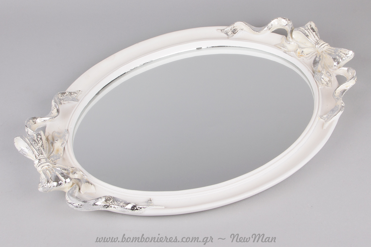 Καθρέφτης/δίσκος σε λευκό χρώμα με φιόγκους για τη διακόσμηση του σπιτιού ή του γάμου σας.