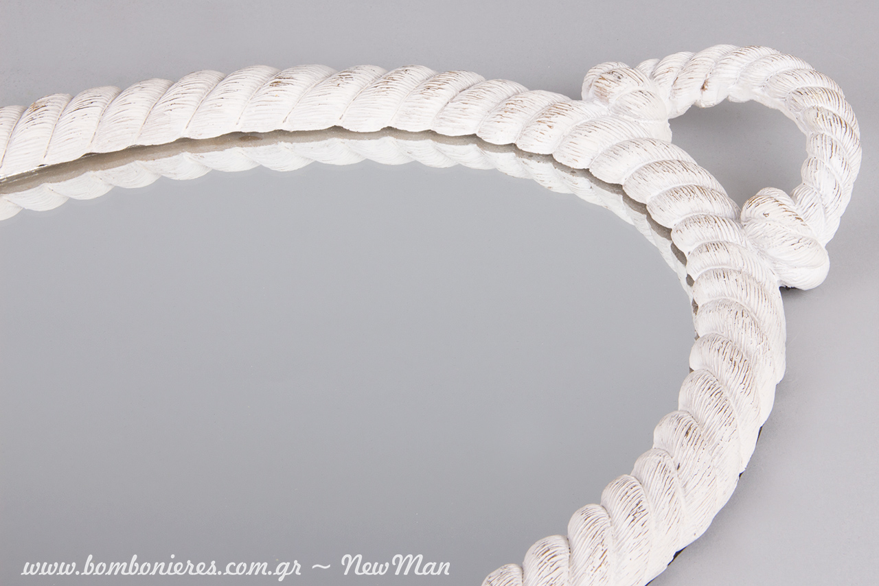 Οβάλ καθρέφτης σε λευκό χρώμα για τη διακόσμηση του σπιτιού ή του γάμου σας (κορνίζα από σχοινί).