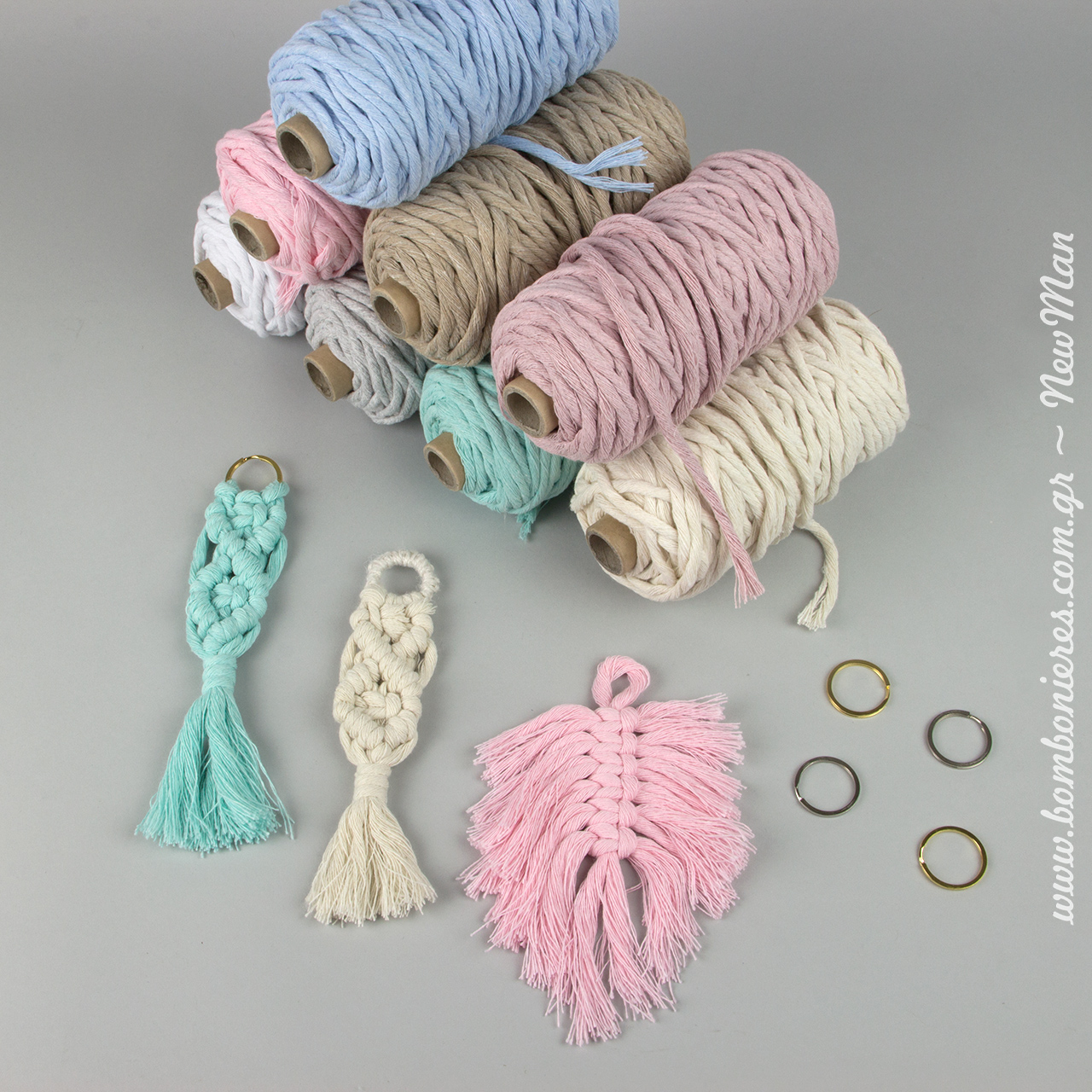 Στο κατάστημα μας θα βρείτε επίσης κρίκους μπρελόκ (μικρός 2.5cm και κρίκος μπρελόκ χρυσός με βερνίκι 2.5cm), οι οποίοι θα σας φανούν πολύ χρήσιμοι ως βάση για τις μακραμέ δημιουργίες σας.