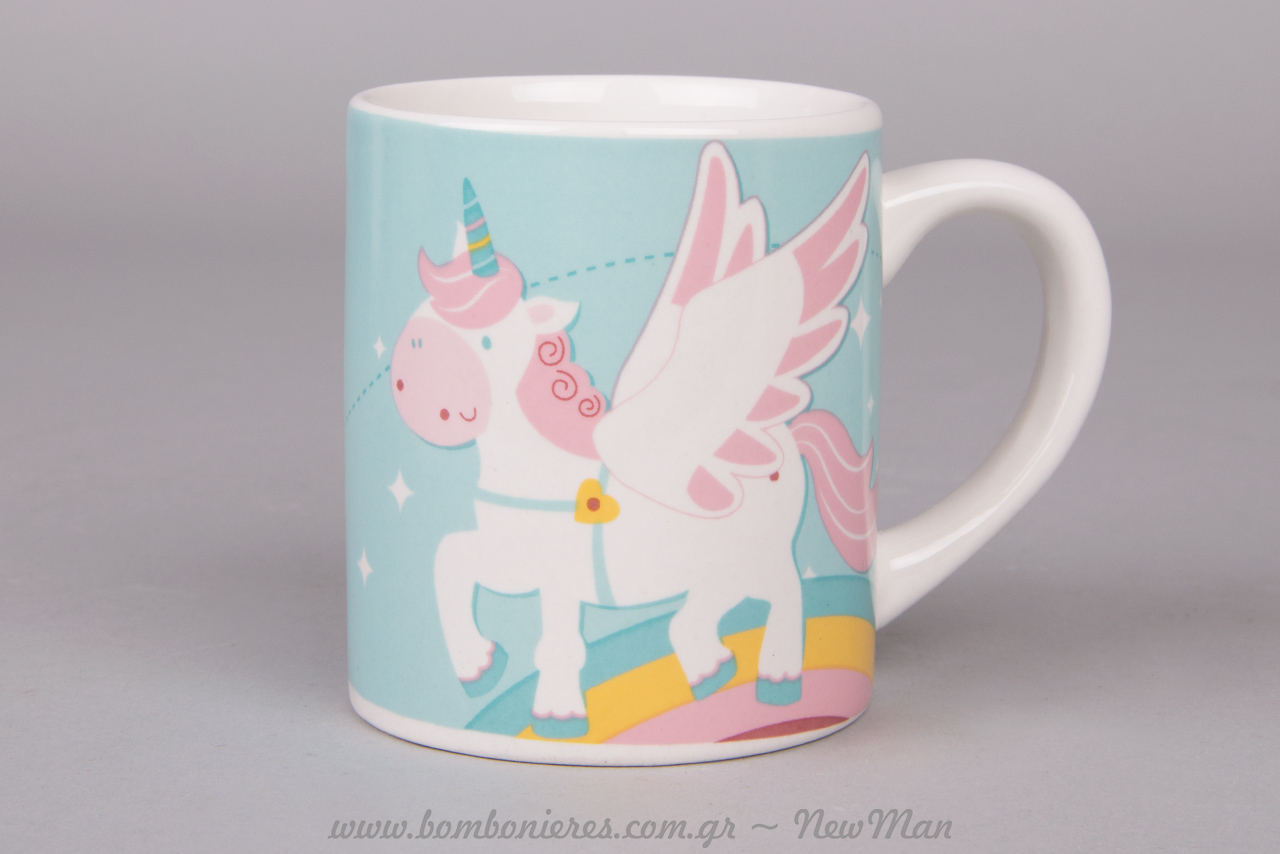 • Κούπα με σχέδιο Μονόκερω σε γλυκιές παστέλ αποχρώσεις.