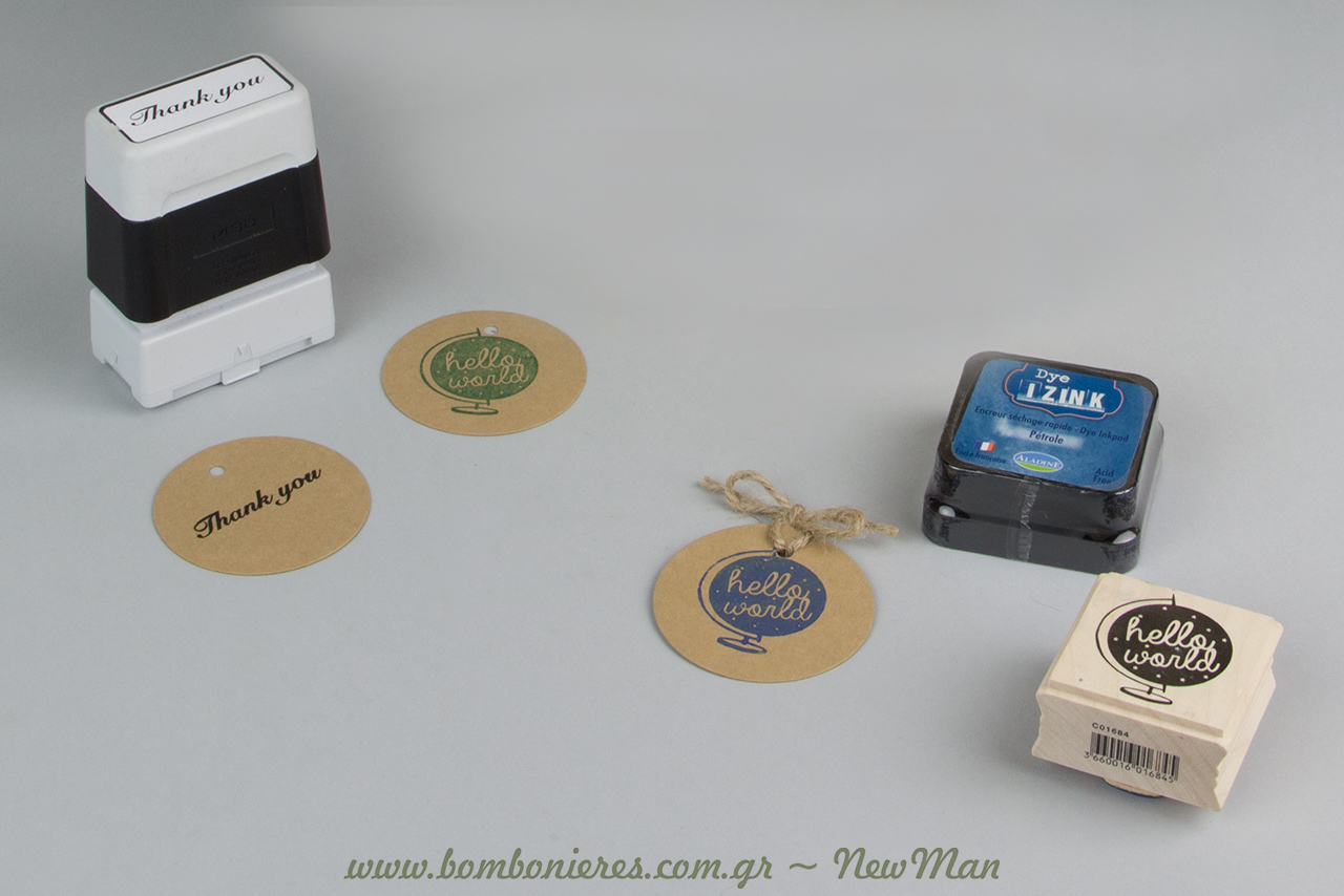 Ετικέτες Eco Brown στρογγυλές, σφραγίδα Brother με ευχαριστήριο μήνυμα και ταμπόν Dye Izink Petrole.