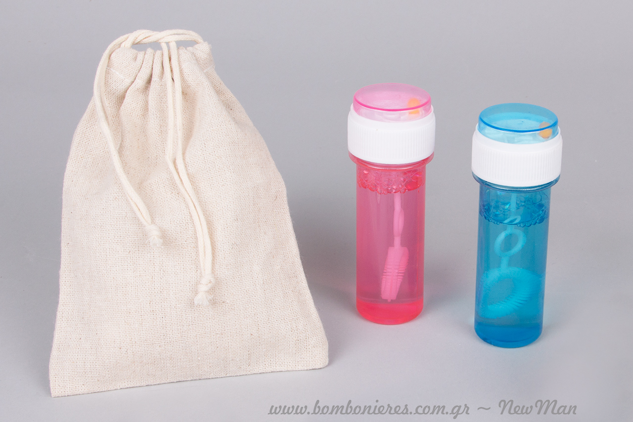 Προμηθευτείτε τα ιδιαιτέρως οικονομικά πουγκάκια από καραβόπανο και βάλτε μέσα τα υπέροχα παιχνιδο-δωράκια τα οποία θα τοποθετήσετε πάνω στο τραπέζι ευχών. Ή αν προτιμάτε μοιράστε τα ως παιδικές μπομπονιέρες, αφήνοντας έτσι τα κουτάκια- μπιζουτιέρες για τους μεγάλους.