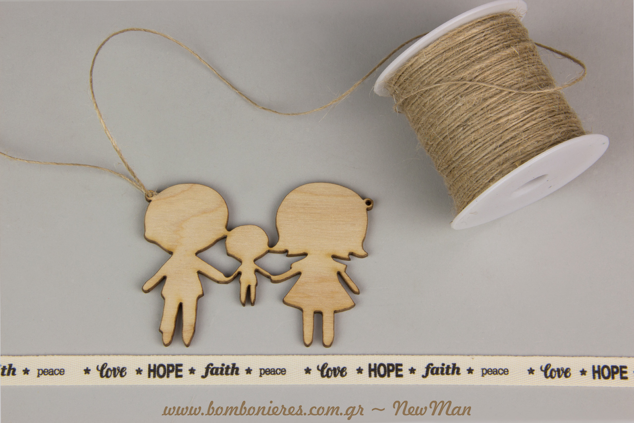 Χρησιμοποιήστε την βαμβακερή κορδέλα με τις ευχές (10mm x 25m) για να φτιάξετε τα DIY χερούλια που βλέπετε και στις φωτογραφίες και τον σπάγκο από λινάτσα για να κρεμάσετε το ξύλινο διακοσμητικό με μαμά-μπαμπά-μωρό.