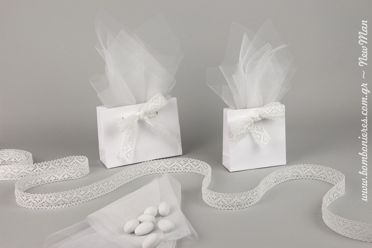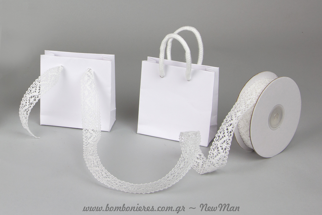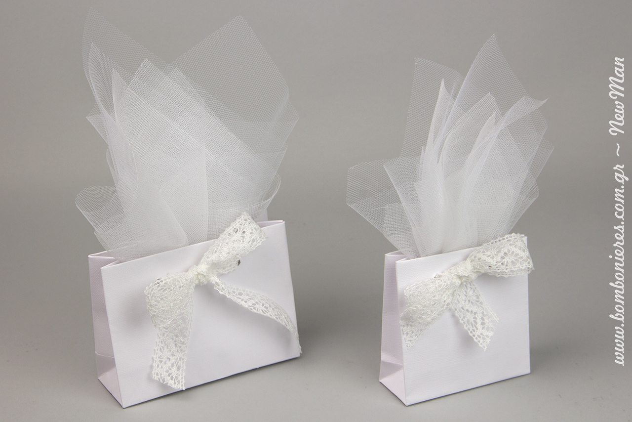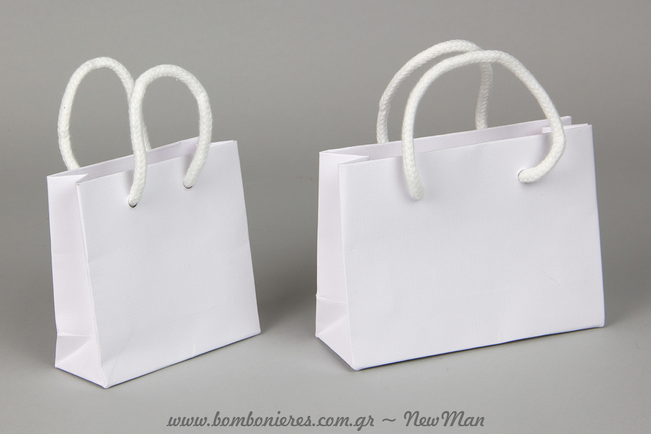 Σε ιδιαιτέρως προσιτή τιμή, η μίνιμαλ μπομπονιέρα σε λευκή χάρτινη τσάντα Gofrato θα εντυπωσιάσει με την κλασσική της κομψότητα και θα αποτελέσει την ιδανική επιλογή για όσους αγαπάνε την απλότητα και την απέριττη αίσθηση πολυτέλειας.