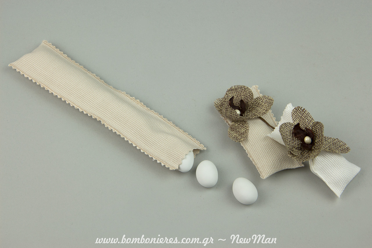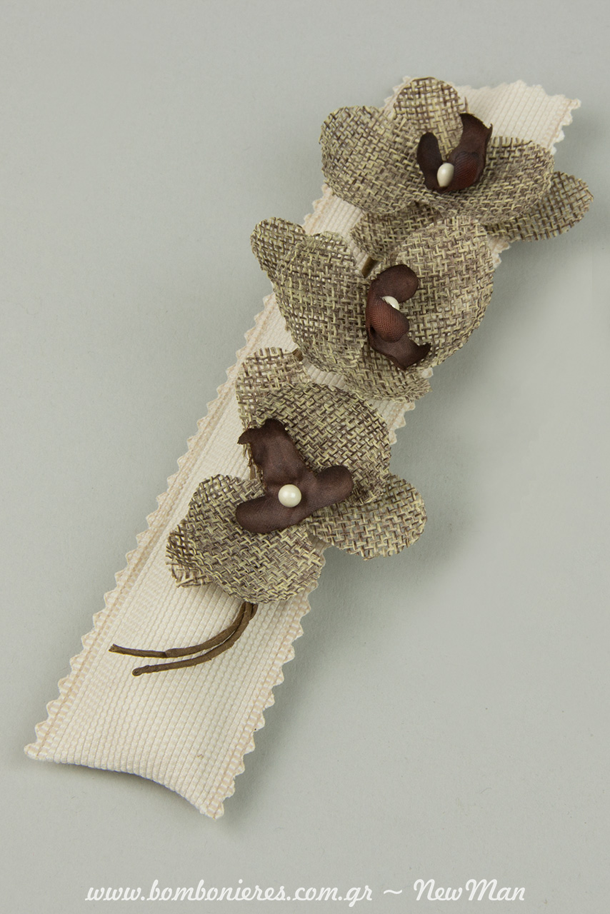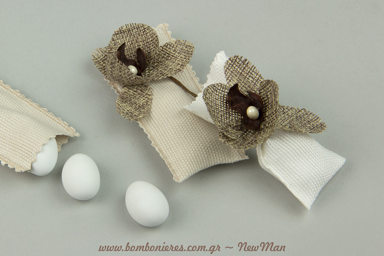 Για όλους αυτούς τους λόγους και καθόλου τυχαία, αποτελεί και μία από τις πιο δημοφιλείς επιλογές για τη νυφική ανθοδέσμη και τον ανθοστολισμό του μυστηρίου. Εμείς, πάλι, στο κατάστημα Newman, με έμπνευση την λεπτεπίλεπτη ομορφιά τους, δημιουργήσαμε μια μοναδική γαμήλια μπομπονιέρα σε πουγκί σωλήνα, το οποίο διακοσμήσαμε με υφασμάτινες ορχιδέες σε γήινες αποχρώσεις.