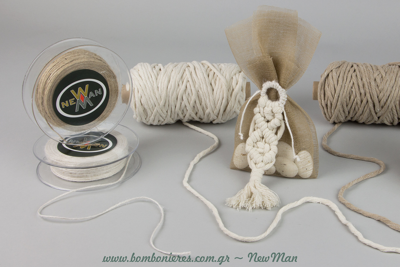 Δημιουργήστε χειροποίητες συνθέσεις μακραμέ για να διακοσμήσετε την μπομπονιέρα του γάμου σας. Στο κατάστημά Newman θα βρείτε κορδόνι μακραμέ σε ποικιλία αποχρώσεων.