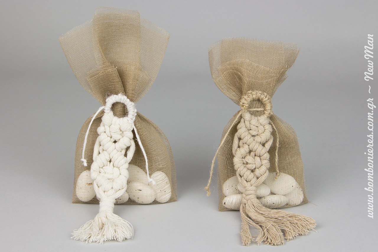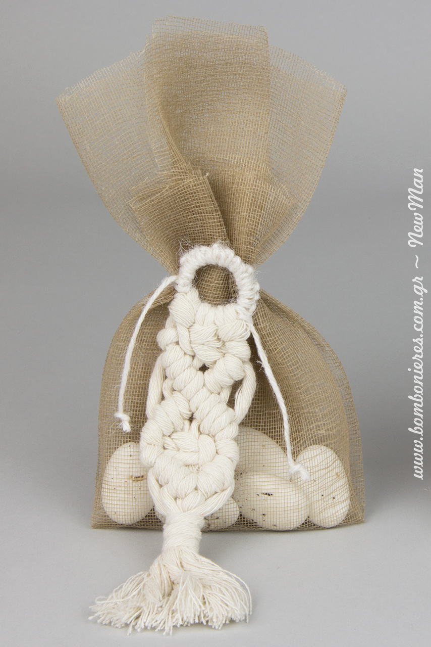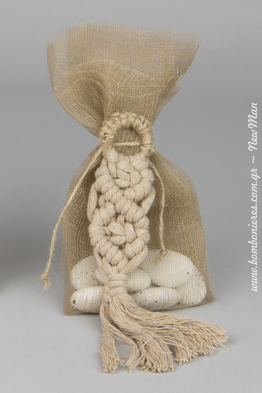Boho χειροποίητη μπομπονιέρα, εμπνευσμένη από την τεχνική μακραμέ για ένα υπέροχο ενθύμιο της σημαντικής σας ημέρας.