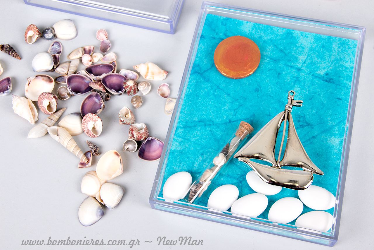 Μια μπομπονιέρα γεμάτη θαλασσινούς συμβολισμούς για το ωραιότερο ταξίδι που θα κάνετε ποτέ, αυτό της νέας σας, κοινής ζωής.