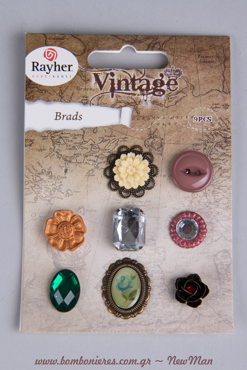 Στην ίδια λογική μπορείτε αντί για cameo, να χρησιμοποιήσετε για το στολισμό της εντυπωσιακής αυτής τούλινης μπομπονιέρας τα διακοσμητικά καρφάκια Vintage Roses, τα οποία διατίθενται σε ενιαία συσκευασία στα σχέδια που βλέπετε και στις φωτογραφίες.