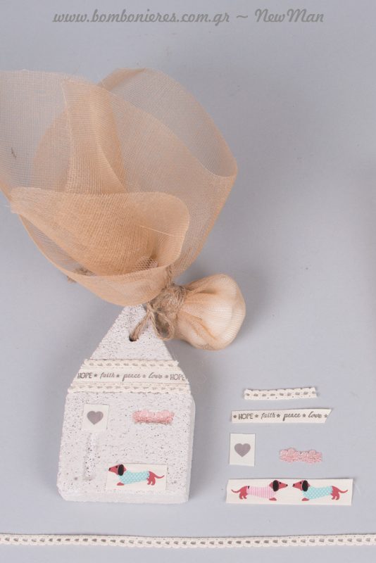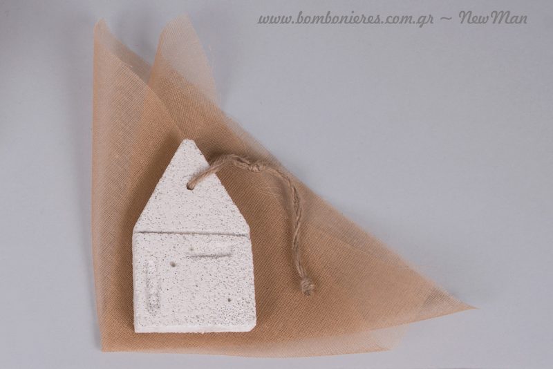 Μπομπονιέρα με τσιμεντένιο σπιτάκι για τον γάμο ή την βάπτιση