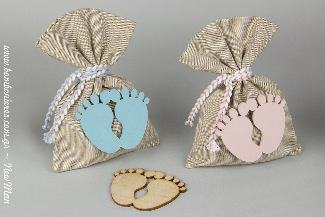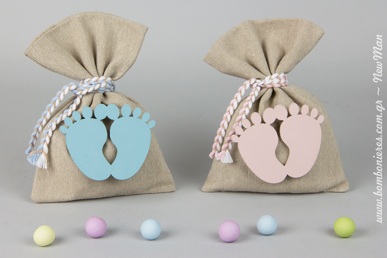 Με έμπνευση τις μωρουδίσιες πατουσίτσες – ένα από τα πιο γλυκά πράγματα που υπάρχουν στον κόσμο όλο- δημιουργήσαμε κι εμείς τη σημερινή πρόταση για μπομπονιέρα βάπτισης σε πουγκί. Μια ιδέα που θα κλέψει καρδιές.