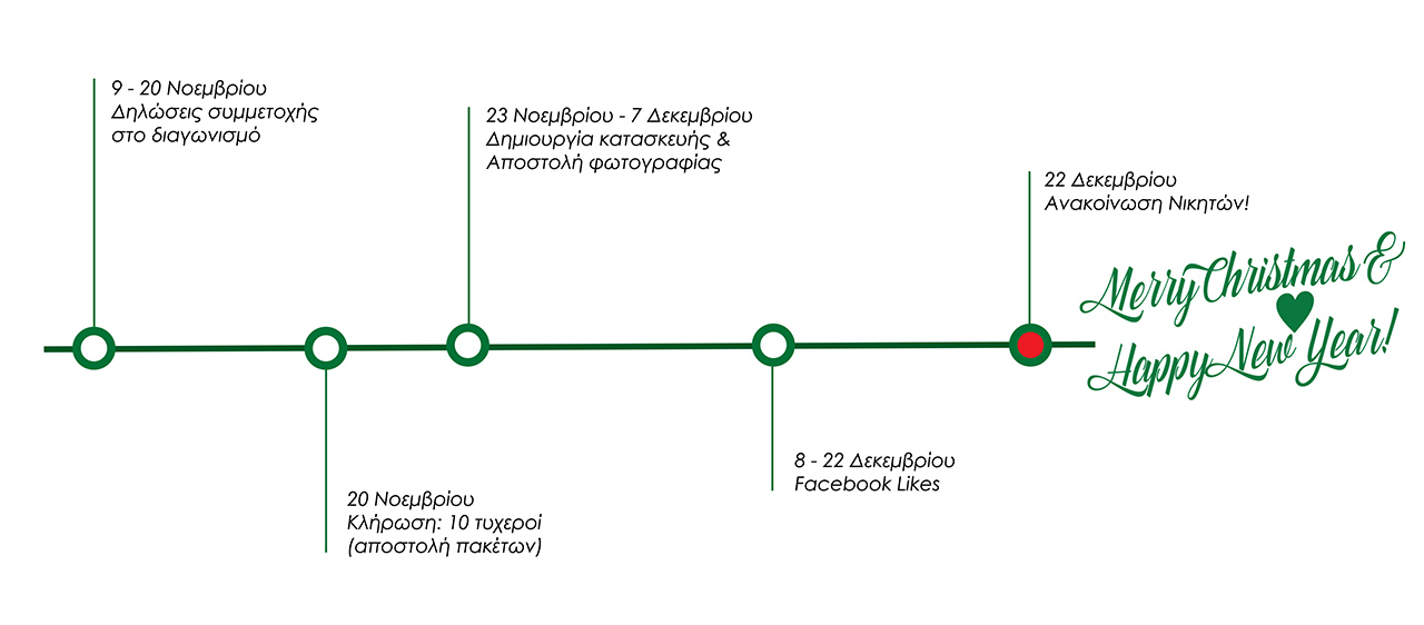 • 8 Δεκεμβρίου – 22 Δεκεμβρίου : Διαγωνισμός μέσω Facebook. Οι ονειροπαγίδες με τα περισσότερα Likes κερδίζουν το 2ο και το 3ο βραβείο.