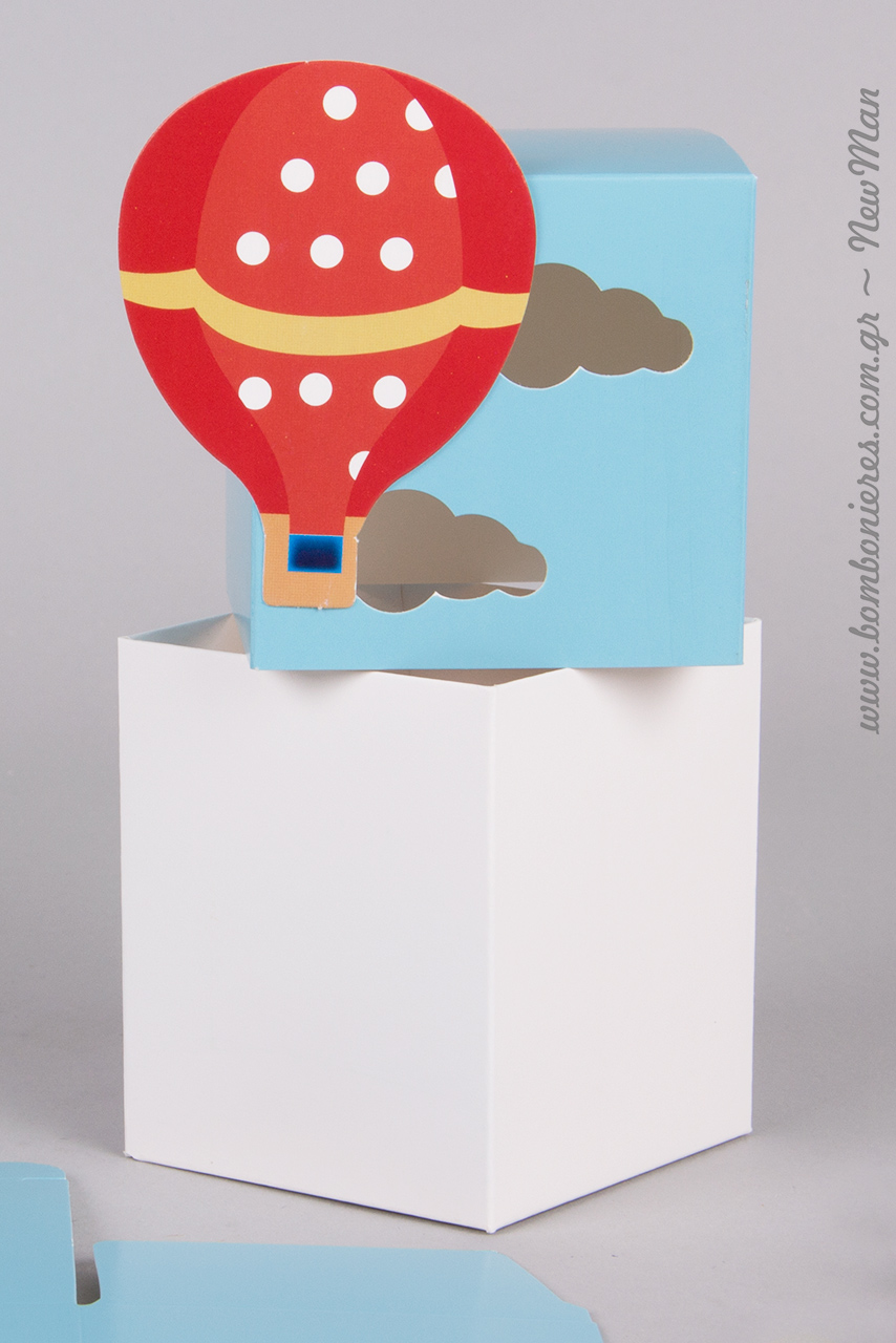 Όλοι οι γονείς θέλουμε να προσφέρουμε το καλύτερο στο παιδί μας και να γιορτάσουμε τις σημαντικές του στιγμές με τον πιο όμορφο κι ιδιαίτερο τρόπο. Οι εποχές είναι τέτοιες, όμως, που δεν αφήνουν μεγάλα περιθώρια για πολυτέλειες. Κι η βάφτιση είναι ένα γεγονός, το οποίο μπορεί άνετα να πραγματοποιηθεί και σε πιο χαμηλό κόστος, αρκεί να βρούμε τις κατάλληλες λύσεις. Μια τέτοια λύση είναι κι οι όμορφες μπομπονιέρες της σημερινής μας ανάρτησης σε χάρτινο κουτί με θέμα Αερόστατο.