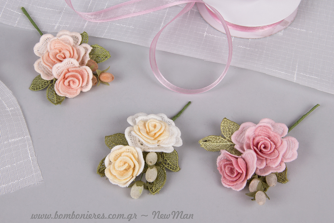 Για τους λάτρεις των τριαντάφυλλων, λοιπόν, που επιθυμούν να εντάξουν στο γάμο τους με κάθε τρόπο αυτά τα πανέμορφα λουλούδια, έχουμε να προτείνουμε την ρομαντική μπομπονιέρα με κιπούρ τριαντάφυλλα.