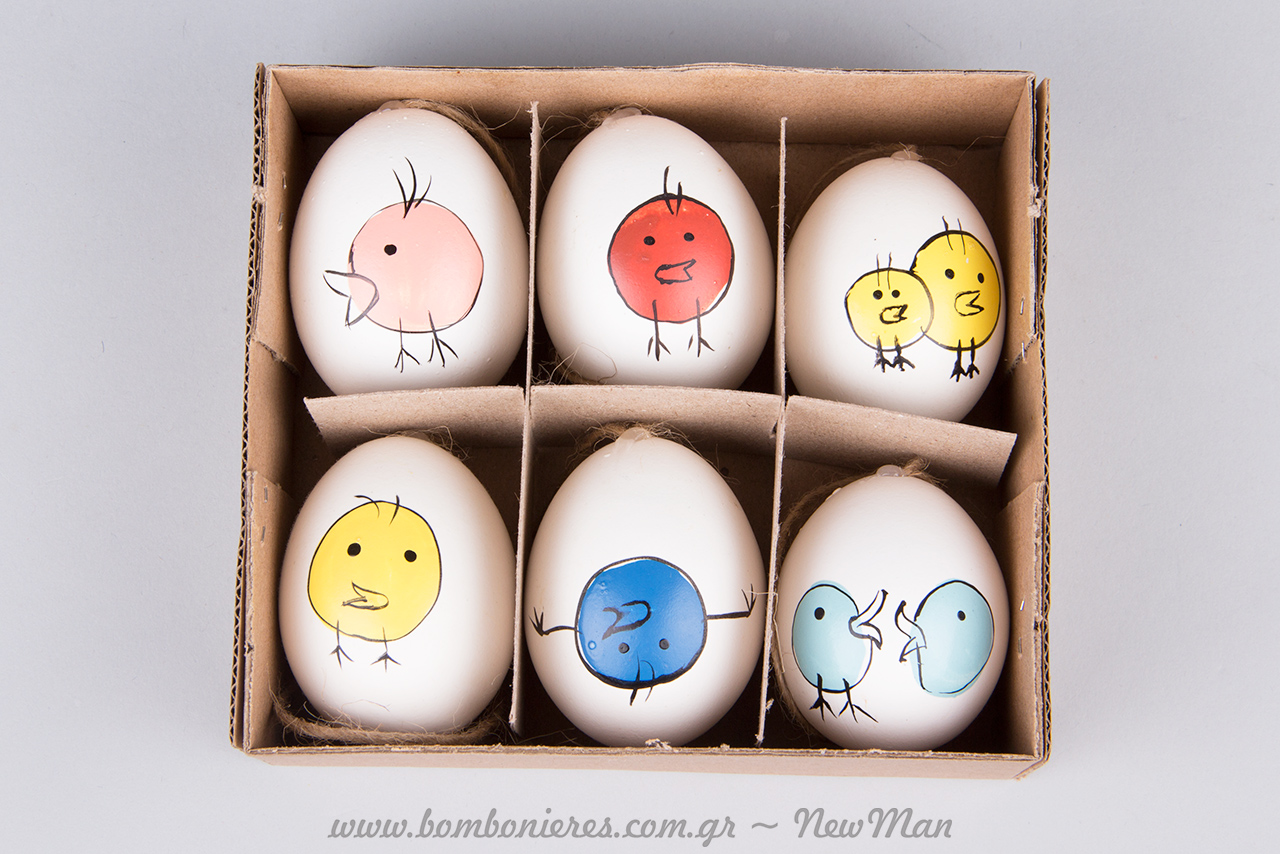 Προσέξτε τις ξεχωριστές πινελιές στα πάνινα κοτοπουλάκια (αλλήθωρα ματάκια, καρό ύφασμα στα φτερά τους) όπως επίσης και τα μινιμαλιστικά κεφάτα σχέδια των κρεμαστών αβγών, αληθινών άδειων αβγών των οποίων έχει διατηρηθεί μόνο το κέλυφος, για να καταλάβετε πως η ποιότητα και η αισθητική κρύβονται τελικά στις λεπτομέρειες.