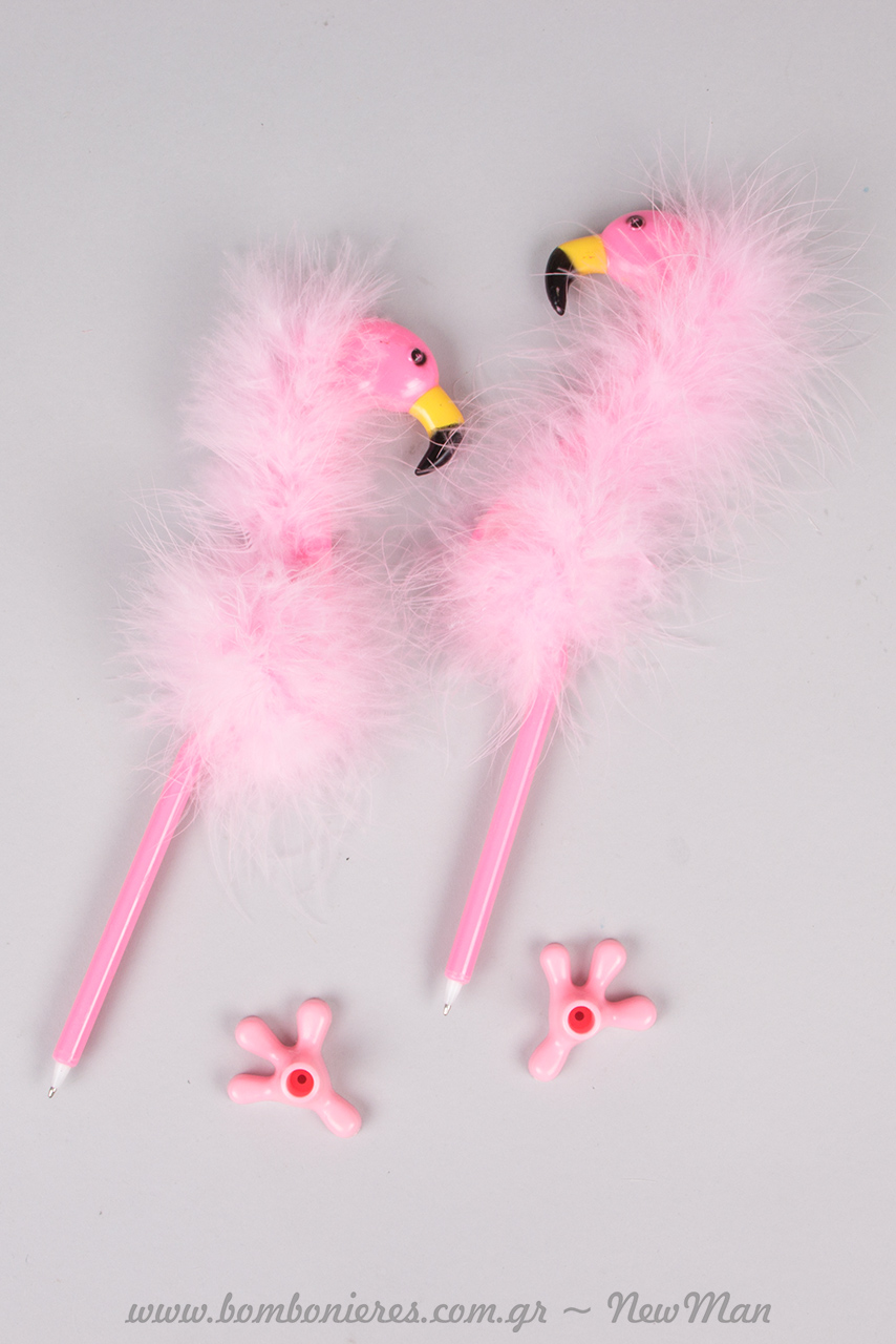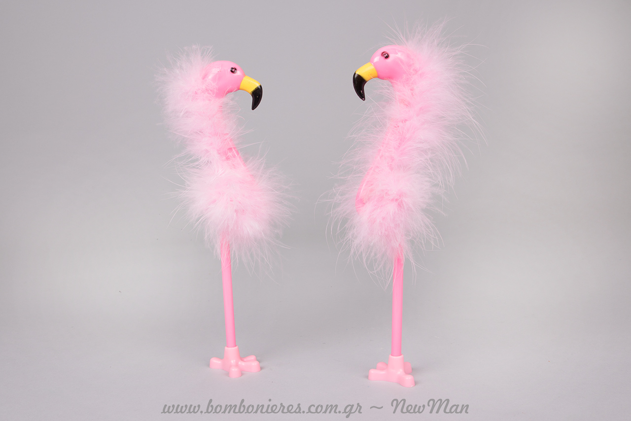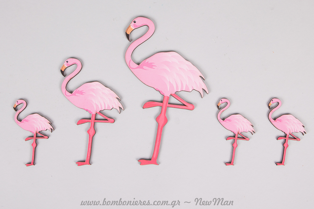 Τα ξύλινα φλαμίνγκο σε τρεις διαστάσεις (8, 13 ή 18 εκ.), τα στυλό φλαμίνγκο με πούπουλα και βάση ποδαράκι καθώς και τα κρεμαστά διακοσμητικά φλαμίνγκο από τσόχα μπορούν να βρουν πολλές εφαρμογές στον στολισμό της βάπτισης. Από το τραπέζι των ευχών και την βαπτιστική λαμπάδα μέχρι τις μπομπονιέρες και το τραπέζι της δεξίωσης. Επίσης γίνονται υπέροχα αναμνηστικά δωράκια.