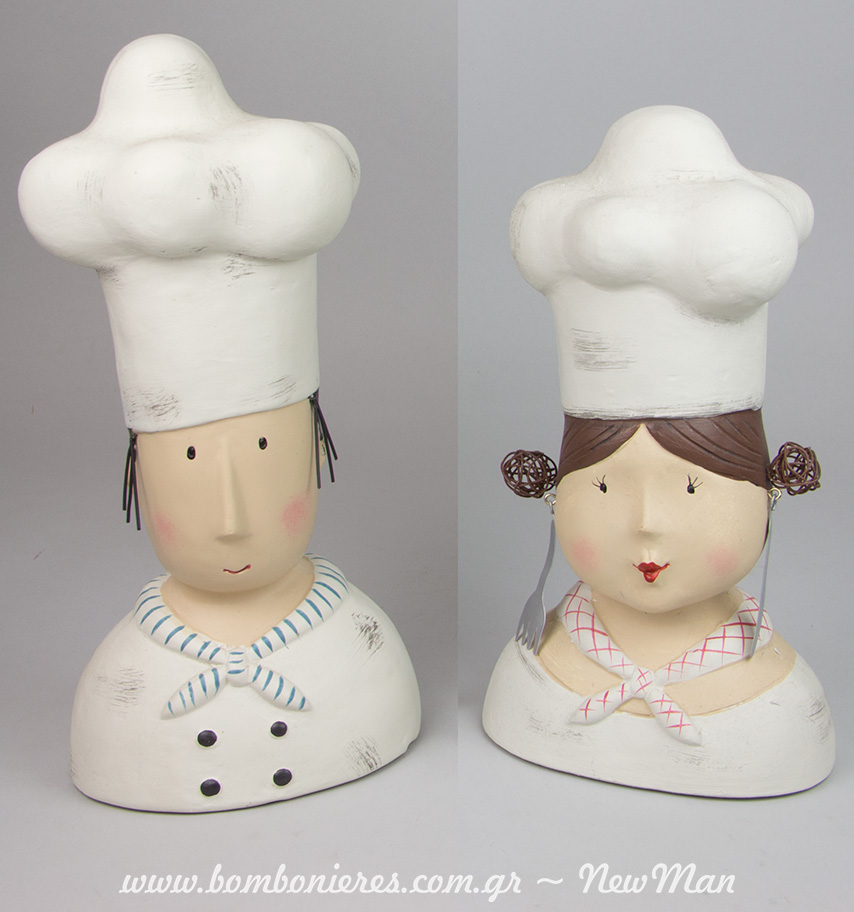 Τέλος, αν σας ενδιαφέρει λίγο παραπάνω η διακόσμηση και η αισθητική της κουζίνας σας, τα διακοσμητικά μάγειρα (30cm) και μαγείρισσα (25cm) θα σας φανούν πολύ πολύ χρήσιμα, δίνοντας ένα ξεχωριστό και ανάλαφρο ύφος στο πιο νόστιμο δωμάτιο του σπιτιού.